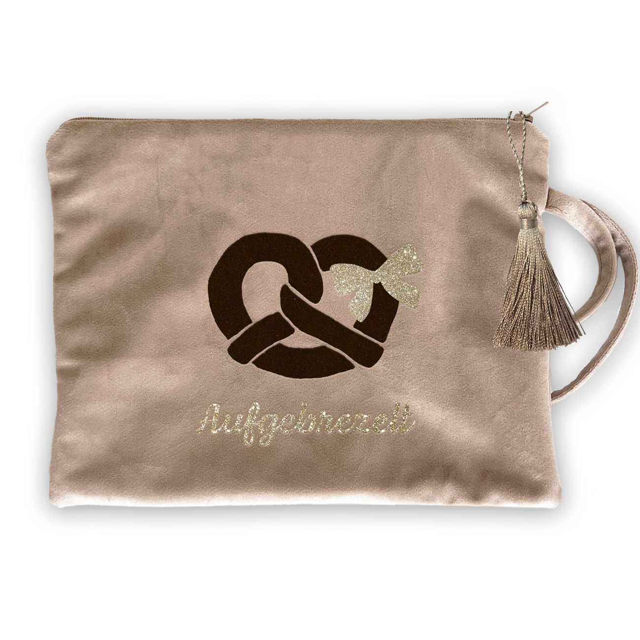 Ausserdem ist sie ein hübsches Geschenk für Frauen und große Mädchen. Zum Tragen gibt es eine Samtschlaufe, am Reissverschluss hängt eine trendige Satin Quaste.