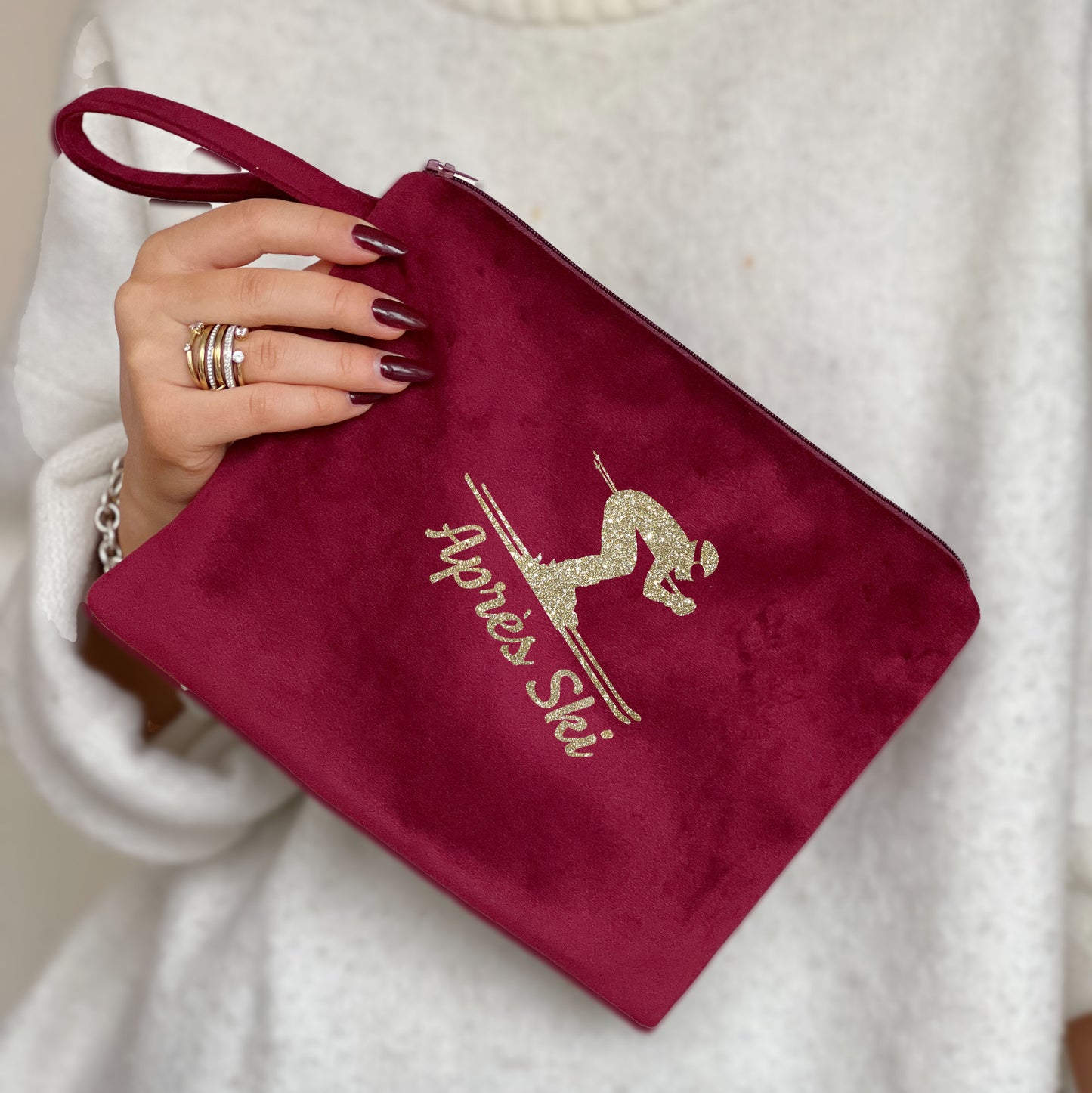 aus feinem Samt oder Leinen sind gefüttert und werden von Hand mit originellen Print Motiven aus Samt oder Glitzer verziert. Die süße Tasche kann man als Clutch tragen oder als zusätzliche „all-in-one bag“ in einer großen Shopper Tasche einsetzen.