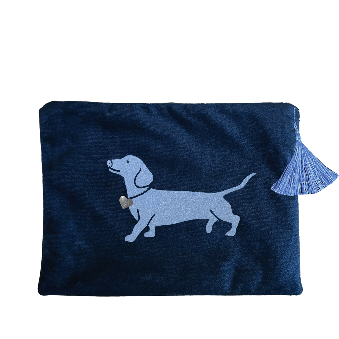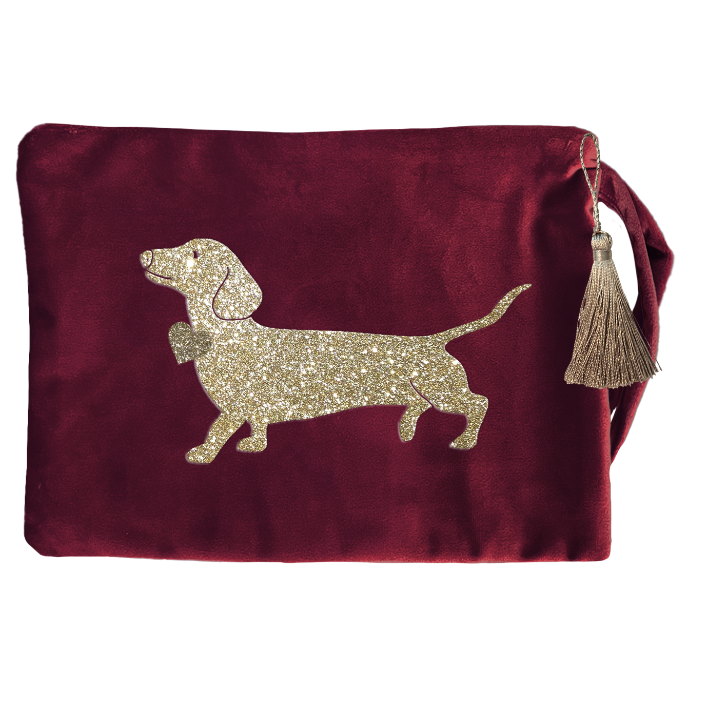 Unsere süße Kosmetiktasche aus Samt bestechen durch ihren besonderen Druck. Der entzückende Dackel ist aus Samt oder Glitzer mit einem kleinen Herzchen am Halsband. Unser absoluter Liebling!