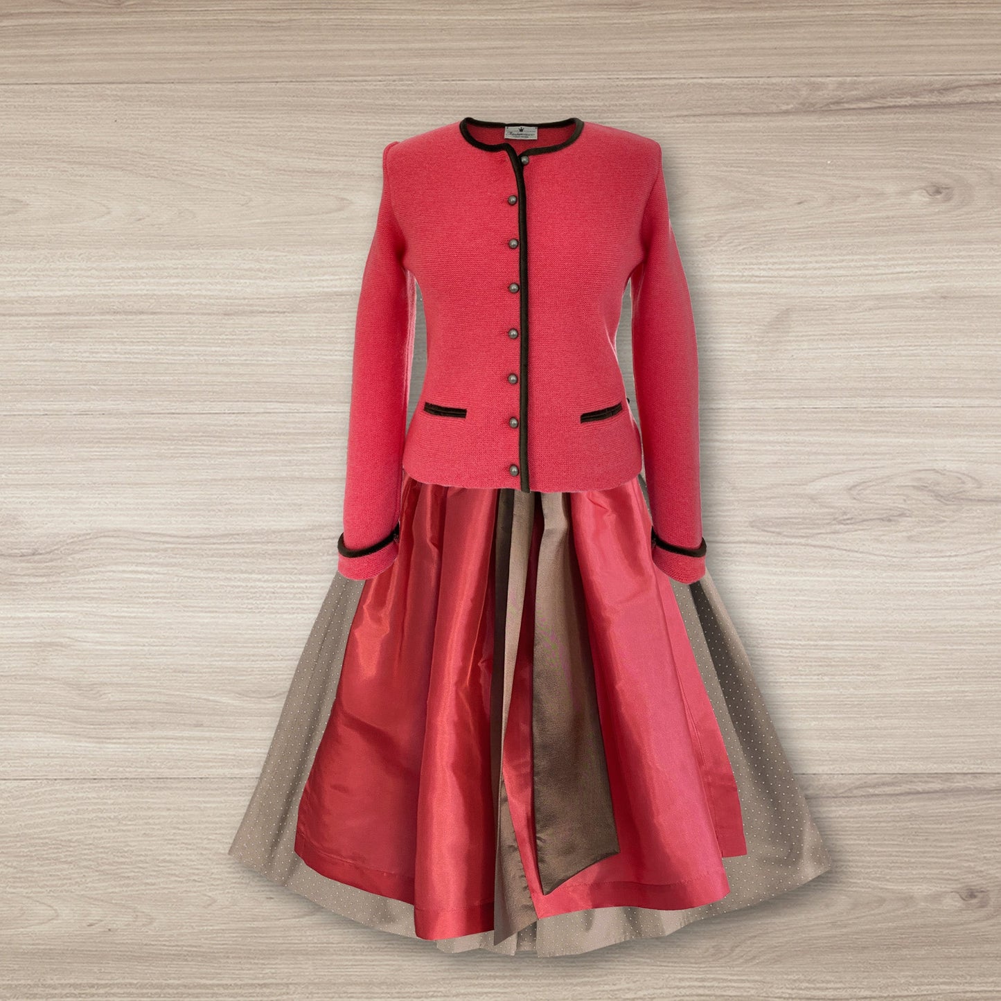 Unser Damen Dirndl ist eine neue Variante des klassischen Dirndls, jedoch ist es bequem und feminin zugleich. Das Highlight ist unser Dirndl T-Shirt - denn wir verzichten auf das Mieder und ersetzen es durch ein edles Shirt mit Trachten Motiv. Das Besondere ist die Wandlungsfähigkeit, denn es ist 3-teilig und besteht aus Rock, Schürze und Dirndl Shirt. Tragen sie das Shirt mit Trachtenmotiv und dem Janker auch mal zur Jeans oder kombinieren den Rock mit einer weißen Bluse. Der Rock in Midi Lange (67cm) macht sich auch toll als Basic mit Strick. Sie werden überrascht sein, welche Möglichkeiten sich bieten. Abgesehen davon ist es natürlich auch unglaublich praktisch, da man alle Teile einzeln waschen kann ;-)