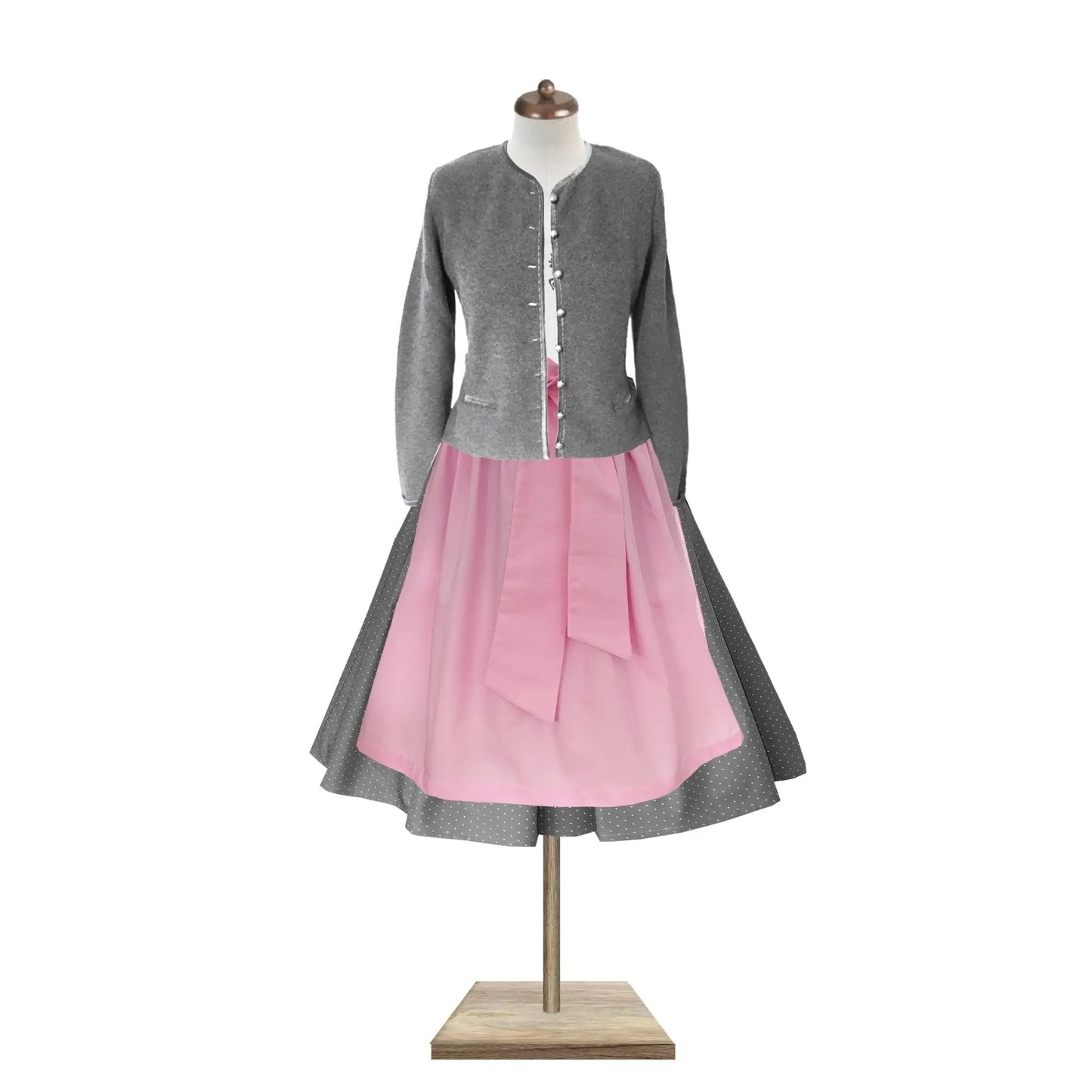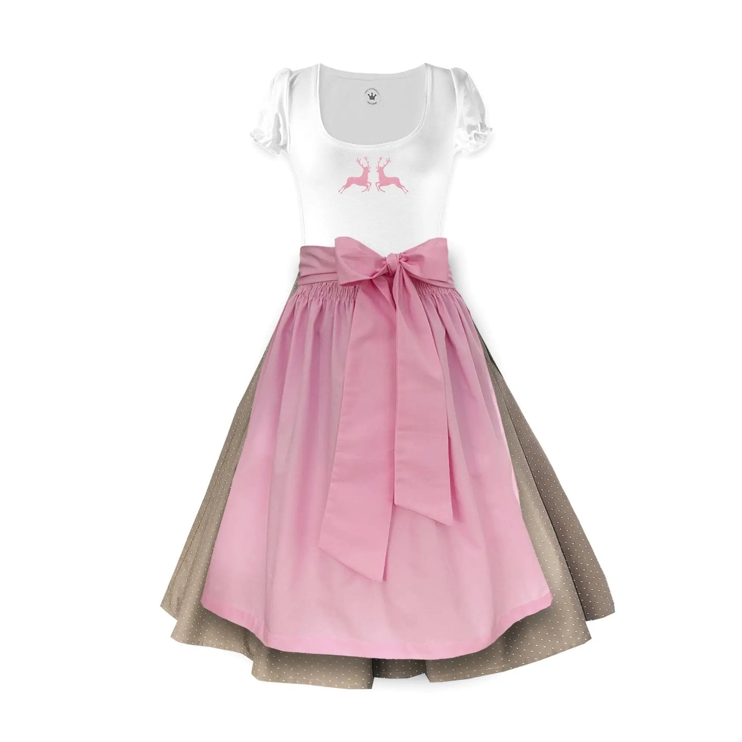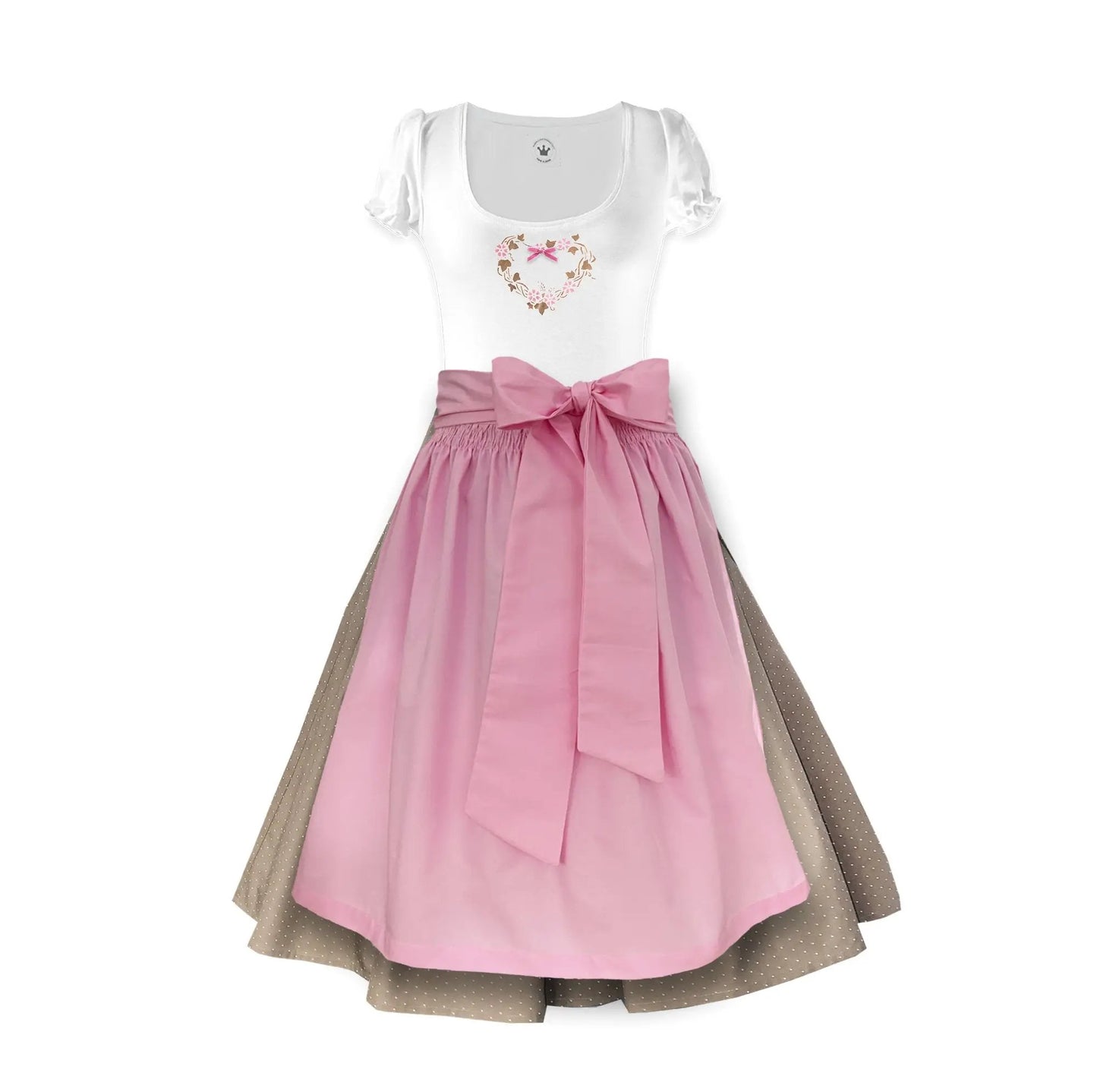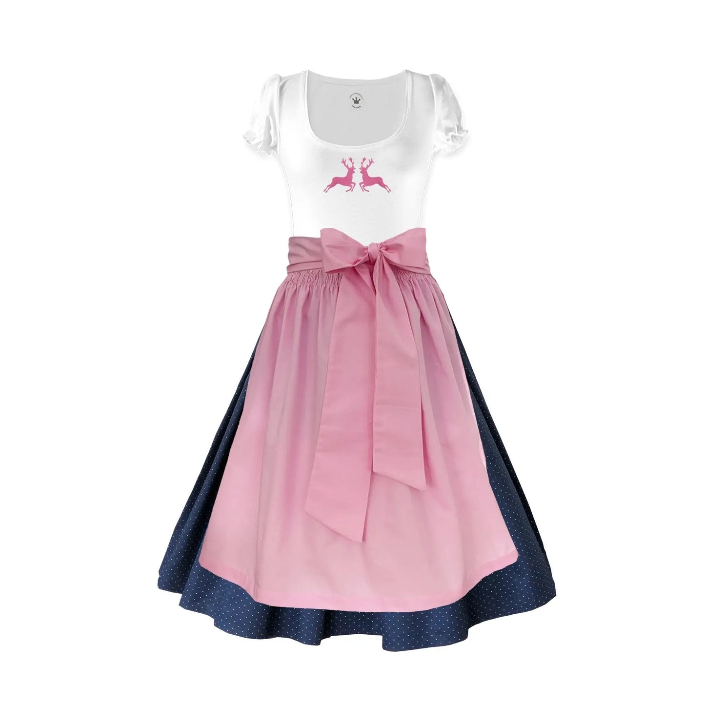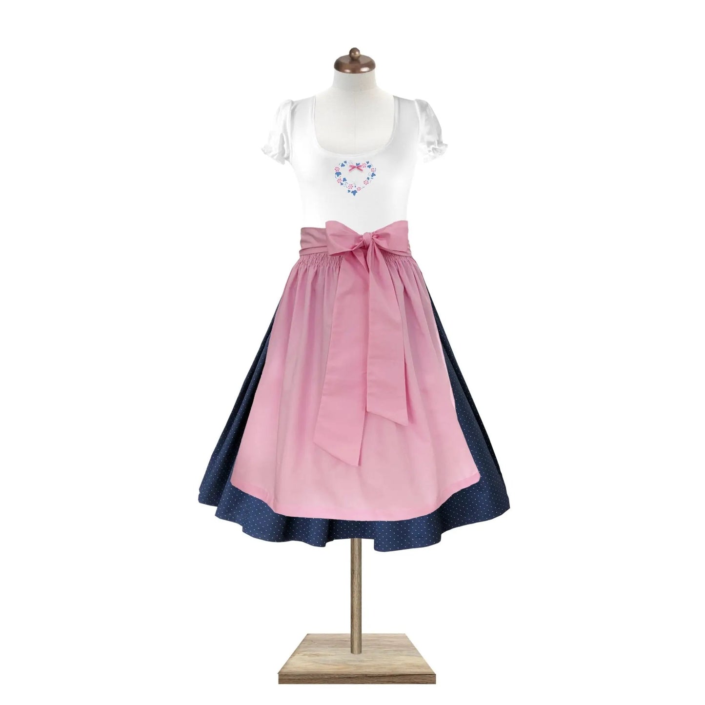Unser klassiches Damendirndl "Rose" kombiniert einen feinen Tuofenrock in beige, hellblau oder dunkelgrün mit einerr wunderschönen unifarbenen rosenfarbenen Schürze. Das schmale und gut dekolletierte Dirndl Shirt wird in Bayern von Hand bedruckt verziert. Entscheiden sie selbst, welches Shirt sie gerne dazu tragen möchten und teilen es uns unter "Shirtmotiv" mit. Klasssich mit Hirschen aus Samt in hellblau oder dunkelgrün oder dem romantischen 2 farbigem Herz (teils Druck, teils aus Samt). Ergänzen Sie das feine Dirndl mit unserem farblich passenden Janker "Katharina" in rosa.