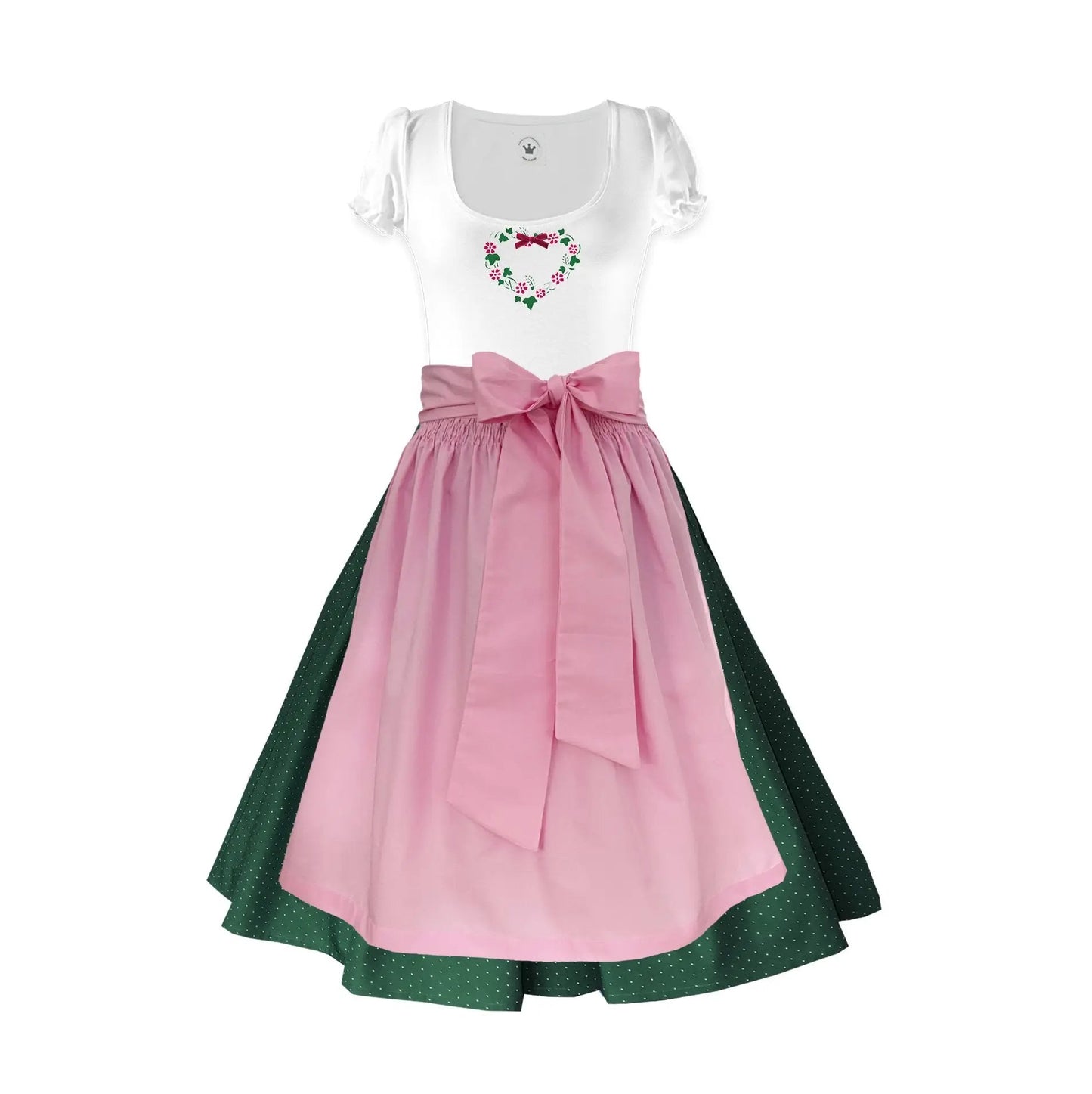 Achtung: Im Lieferumfang ist das 3-teilige Dirndl (bestehend aus Rock, Schürze und Shirt). Der eventuell abgebildete Janker oder Accessoires wie Tücher oder Taschen können sie separat erwerben.