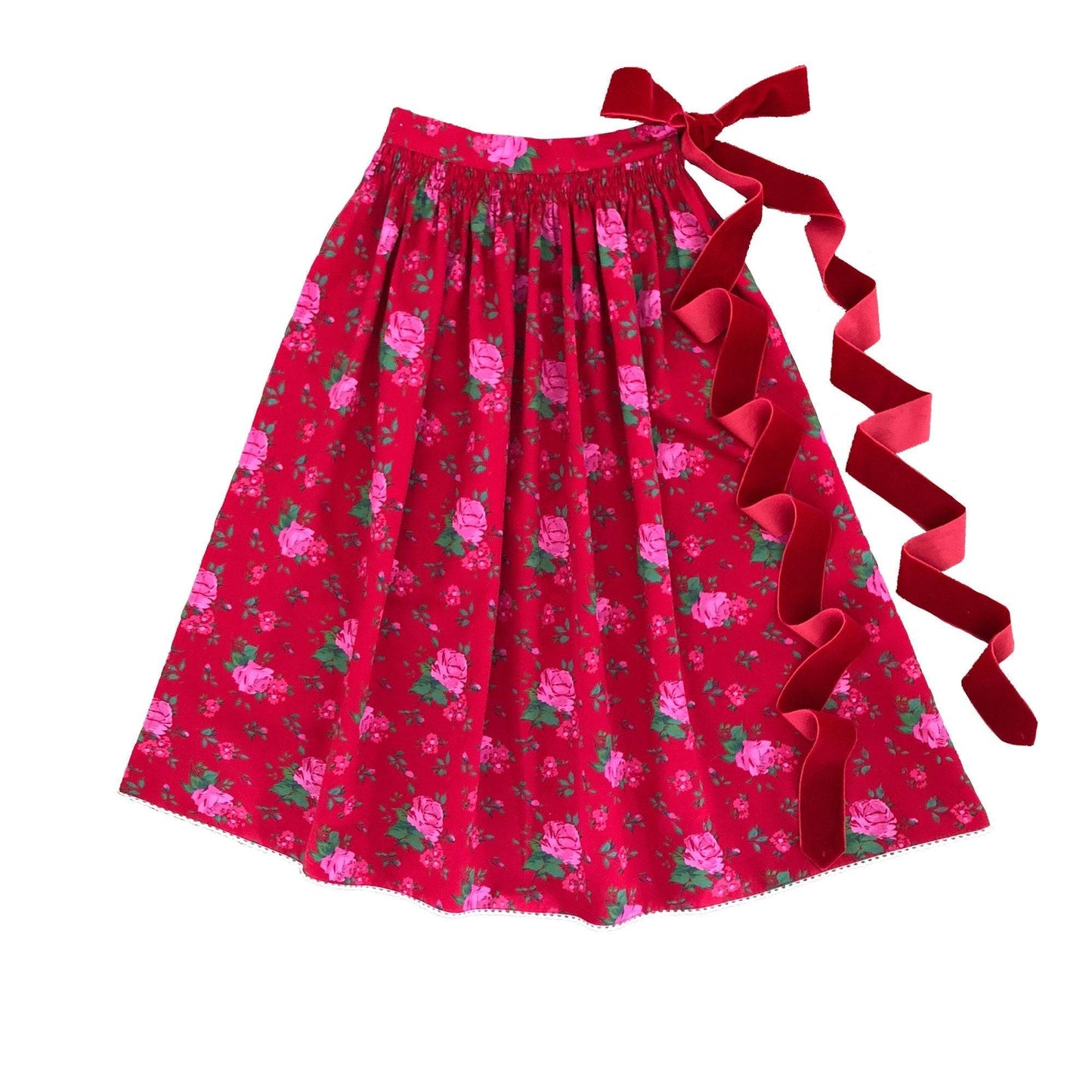 Damen Dirndlschürze Midi Rosen mit Samtband zum Warenkorb hinzufügen