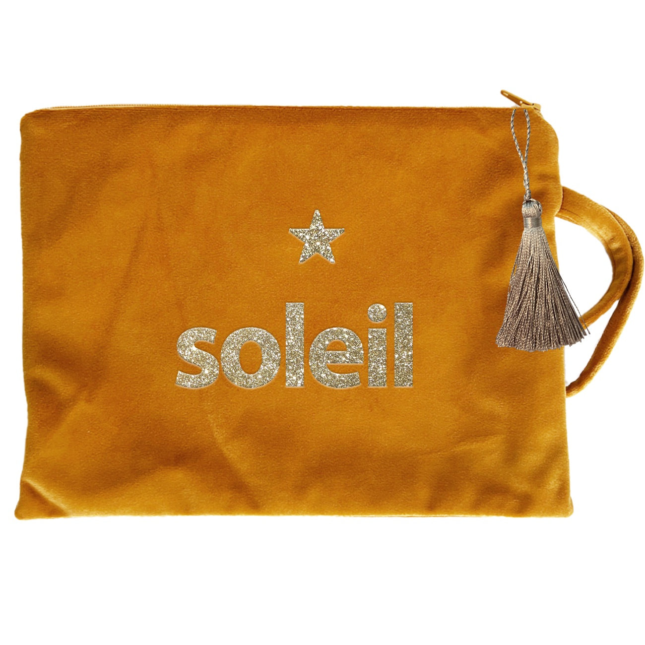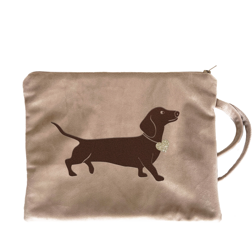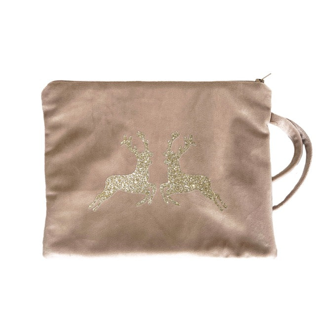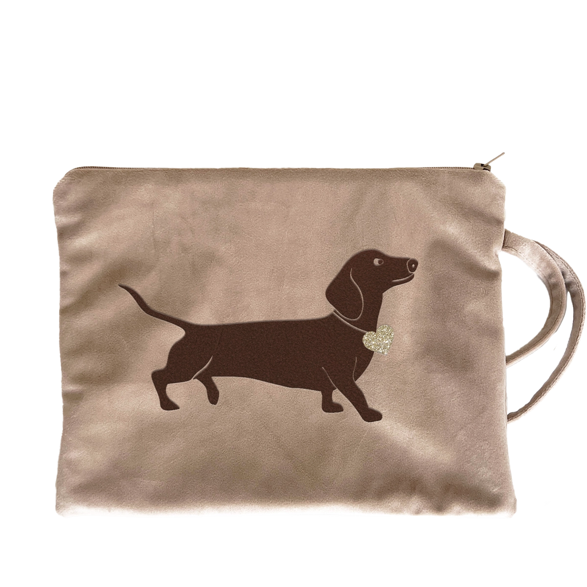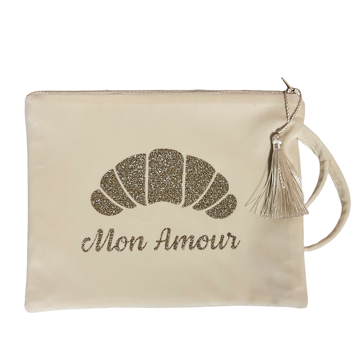 aus feinem Samt oder Leinen sind gefüttert und werden von Hand mit originellen Print Motiven aus Samt oder Glitzer verziert. Die süße Tasche kann man als Clutch tragen oder als zusätzliche „all-in-one bag“ in einer großen Shopper Tasche einsetzen.