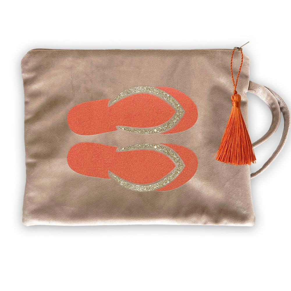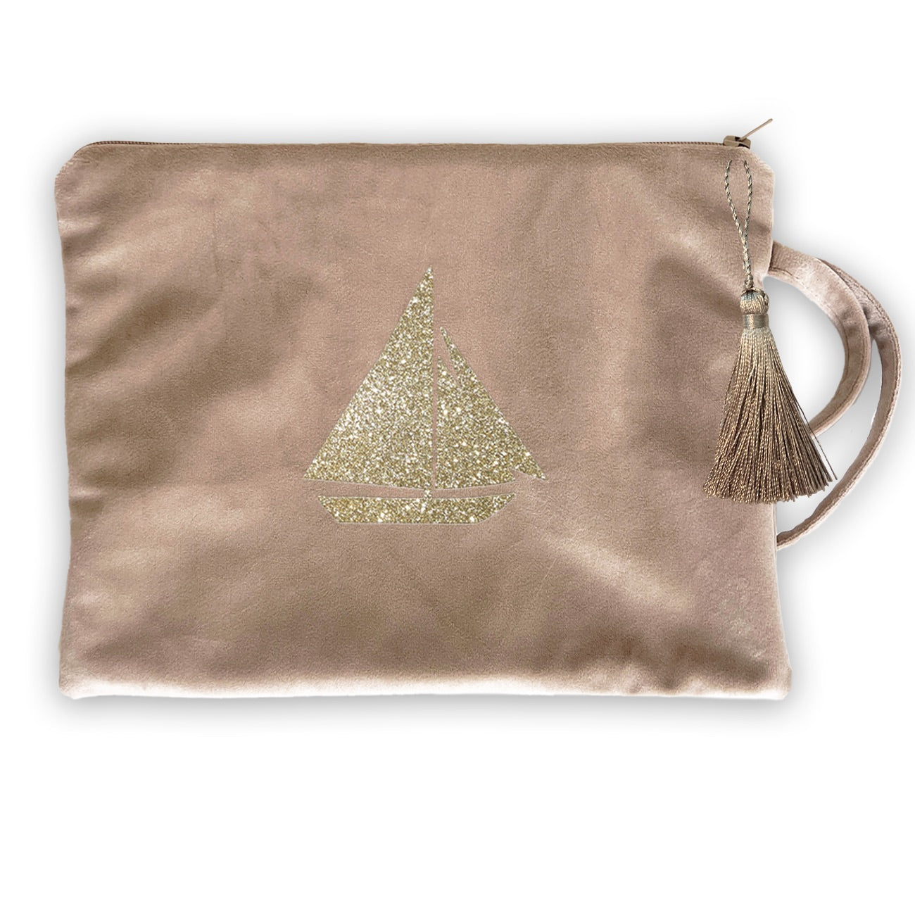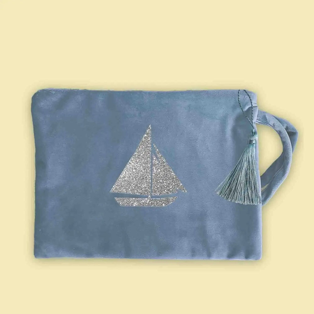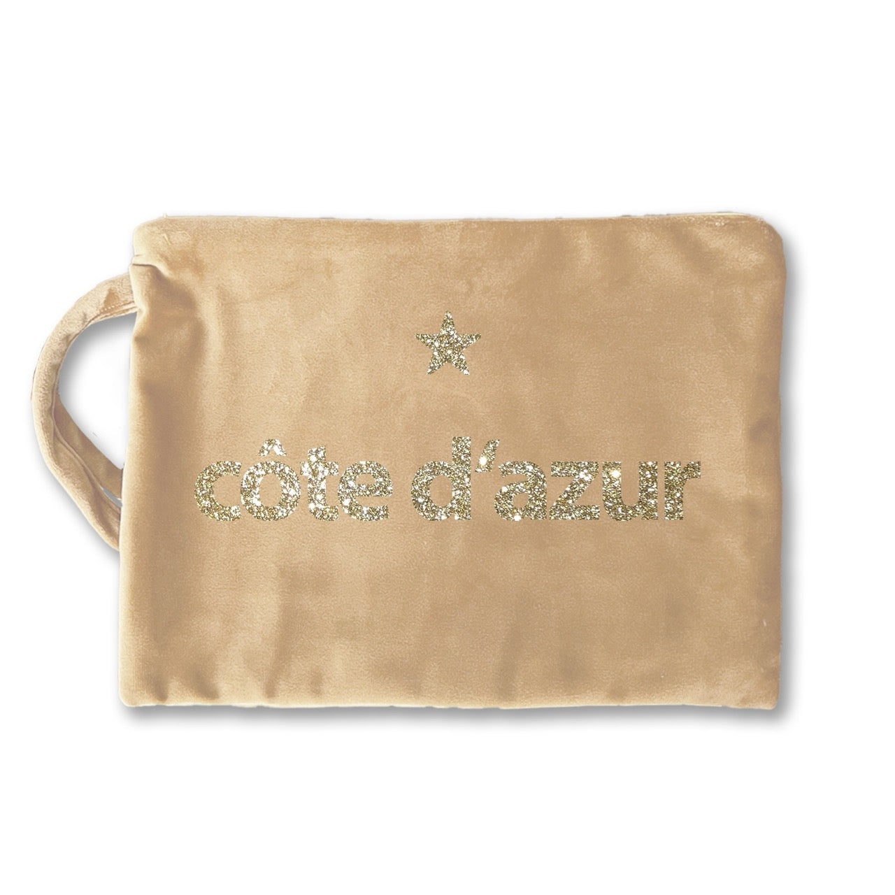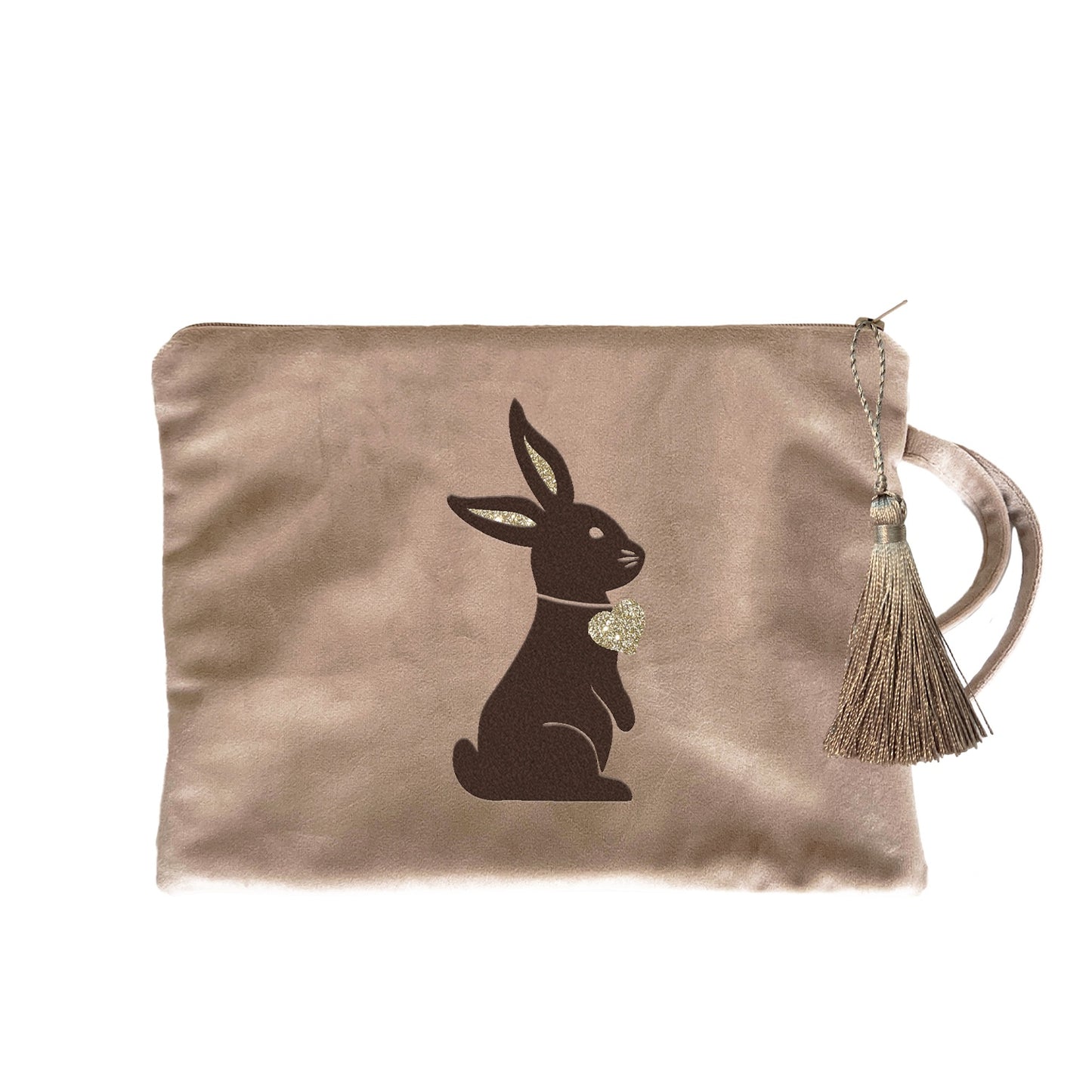 aus feinem Samt oder Leinen sind gefüttert und werden von Hand mit originellen Print Motiven aus Samt oder Glitzer verziert. Die süße Tasche kann man als Clutch tragen oder als zusätzliche „all-in-one bag“ in einer großen Shopper Tasche einsetzen.