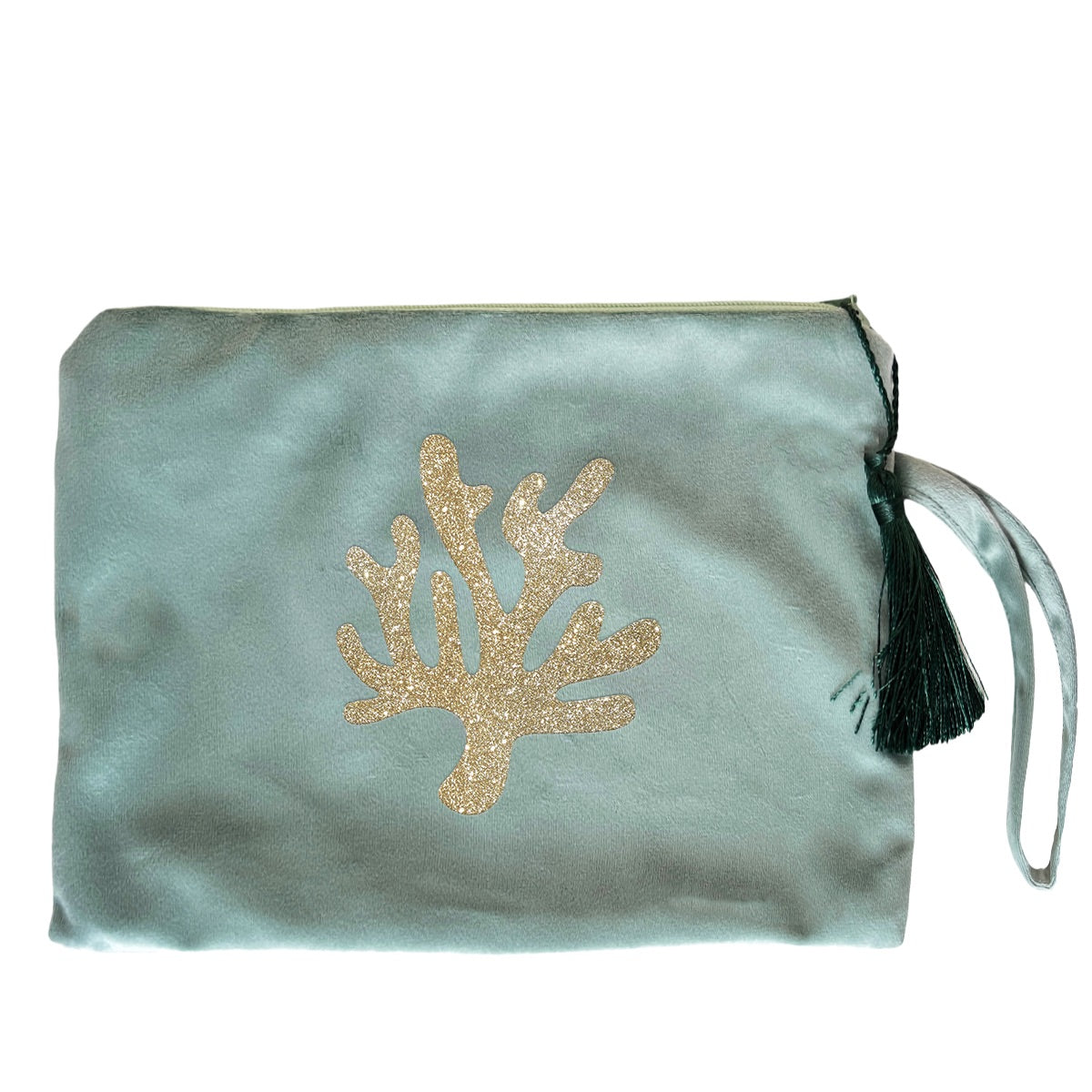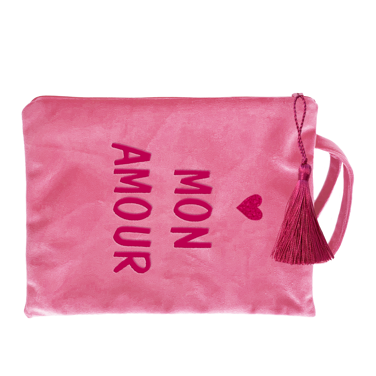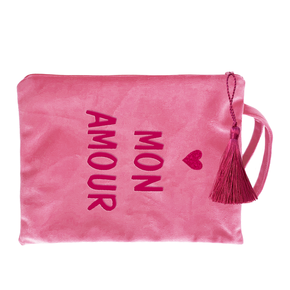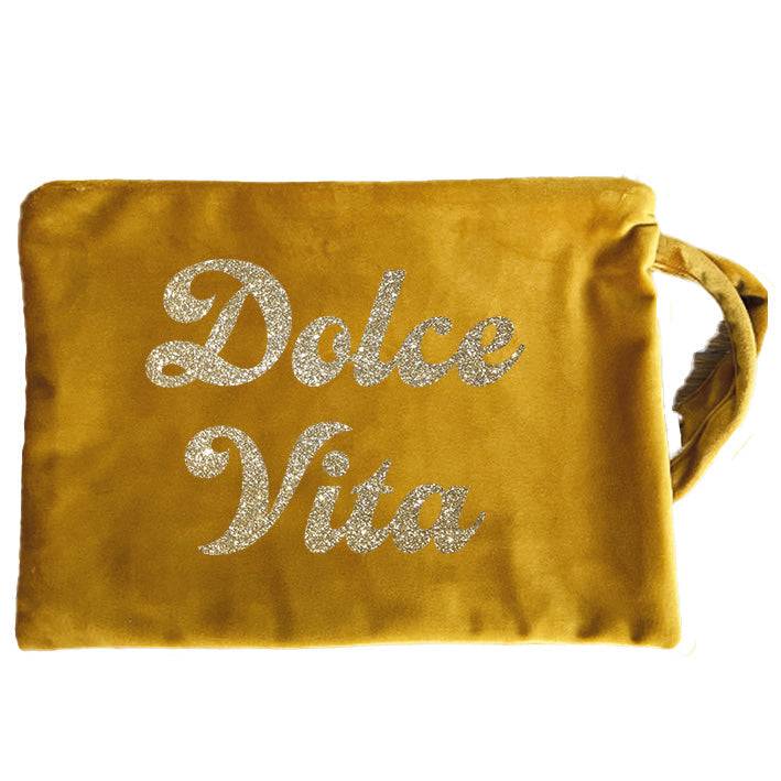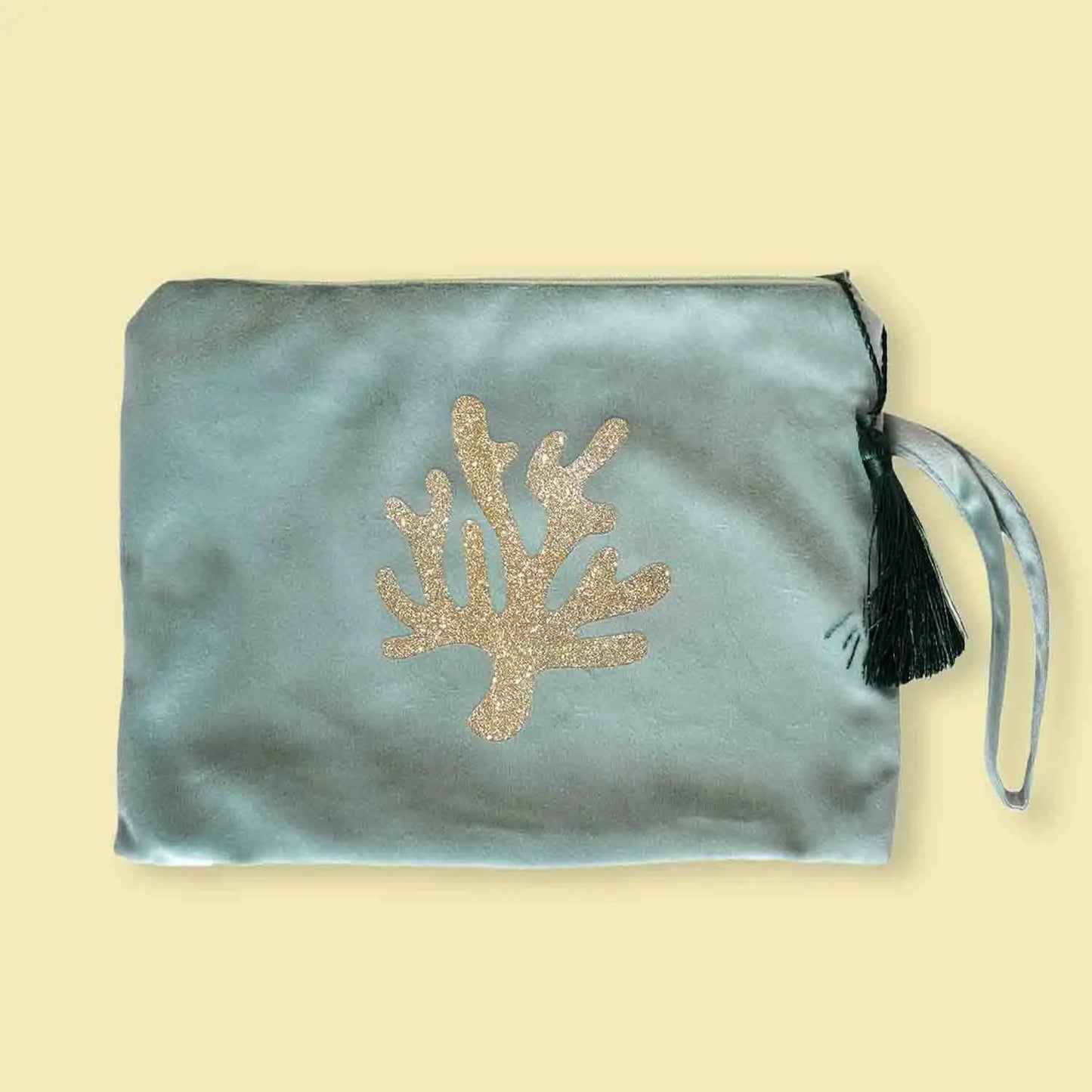 aus feinem Samt oder Leinen sind gefüttert und werden von Hand mit originellen Print Motiven aus Samt oder Glitzer verziert. Die süße Tasche kann man als Clutch tragen oder als zusätzliche „all-in-one bag“ in einer großen Shopper Tasche einsetzen.