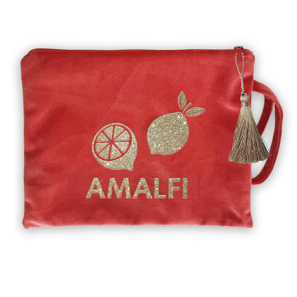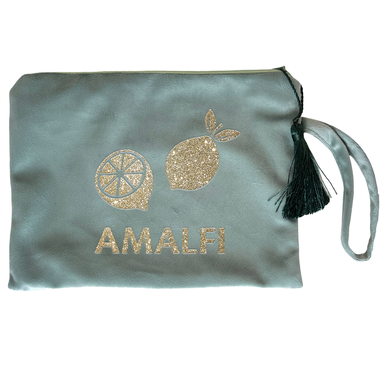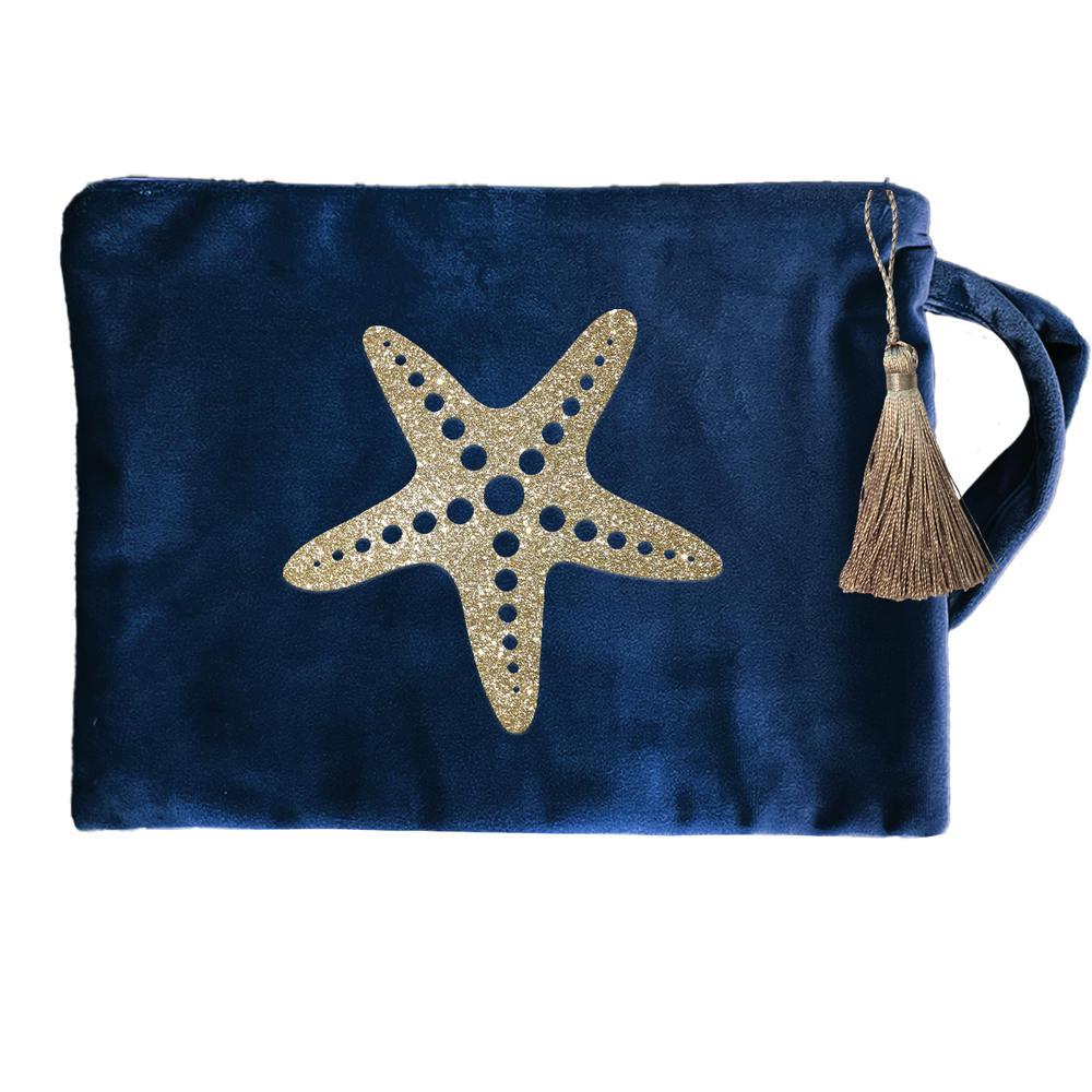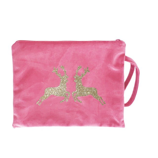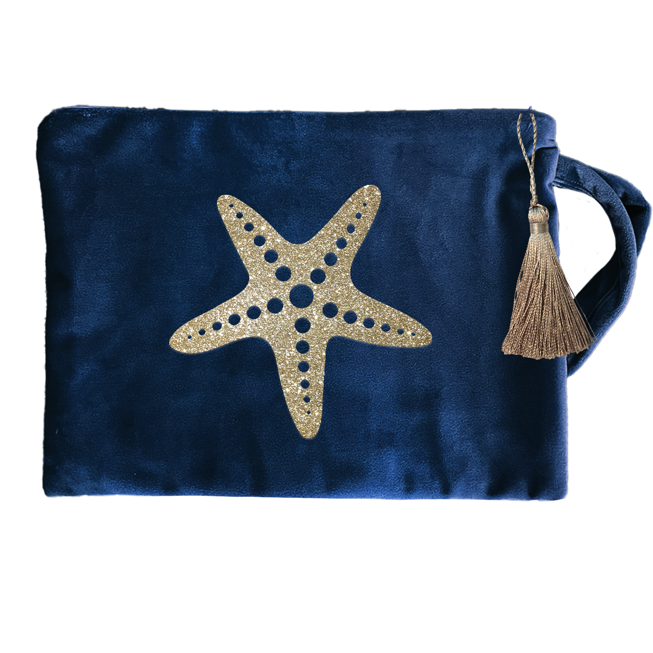 aus feinem Samt oder Leinen sind gefüttert und werden von Hand mit originellen Print Motiven aus Samt oder Glitzer verziert. Die süße Tasche kann man als Clutch tragen oder als zusätzliche „all-in-one bag“ in einer großen Shopper Tasche einsetzen.