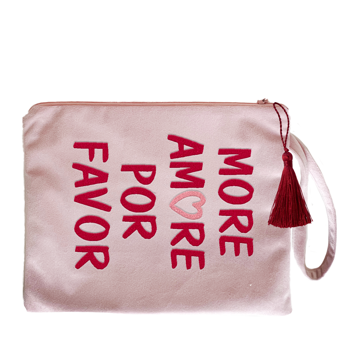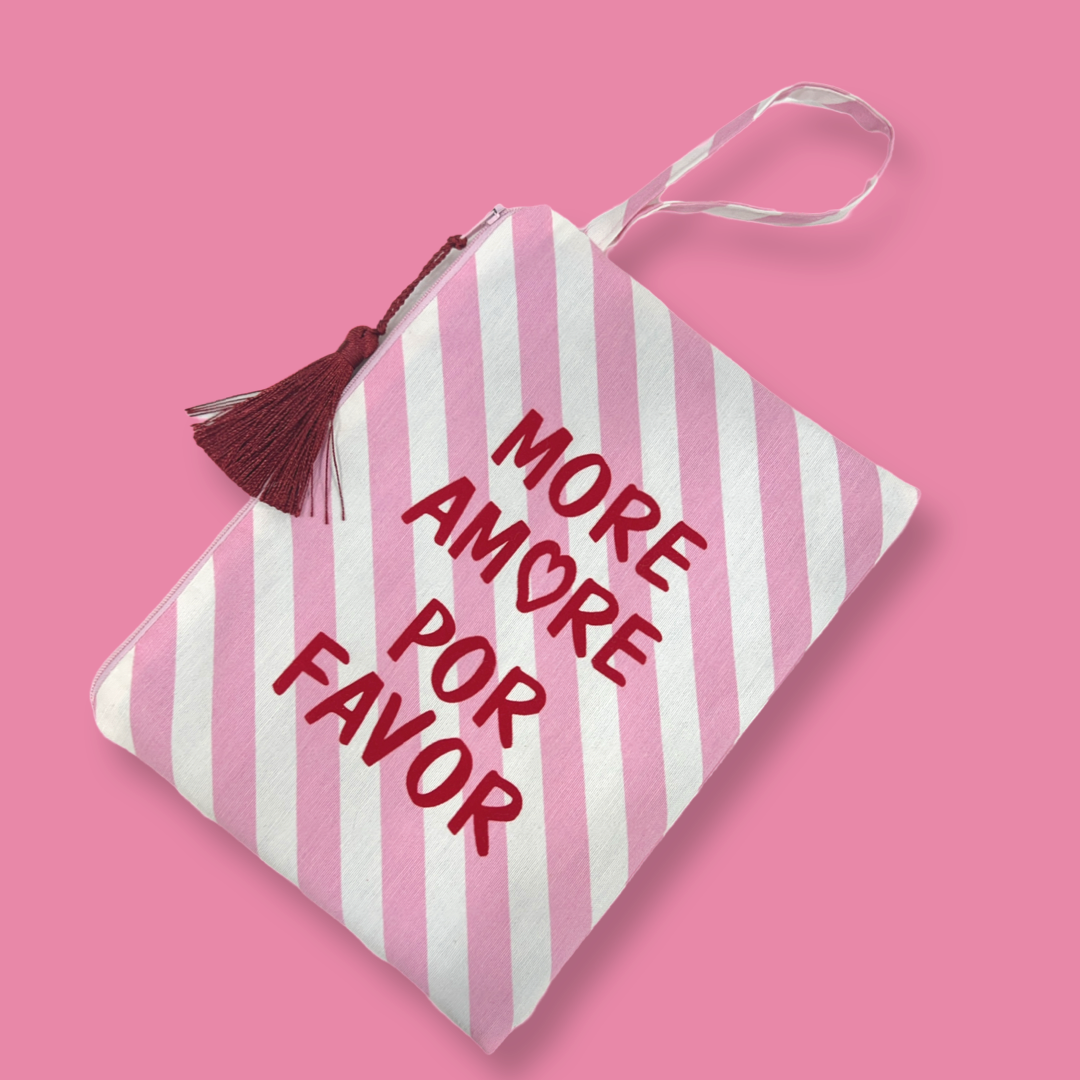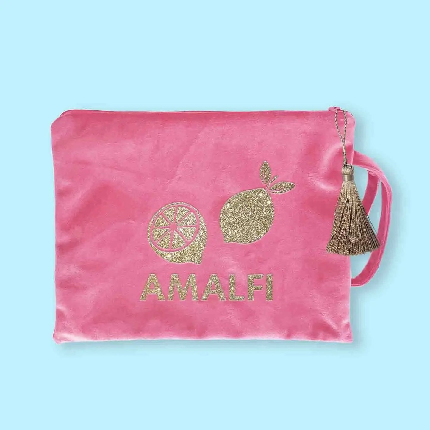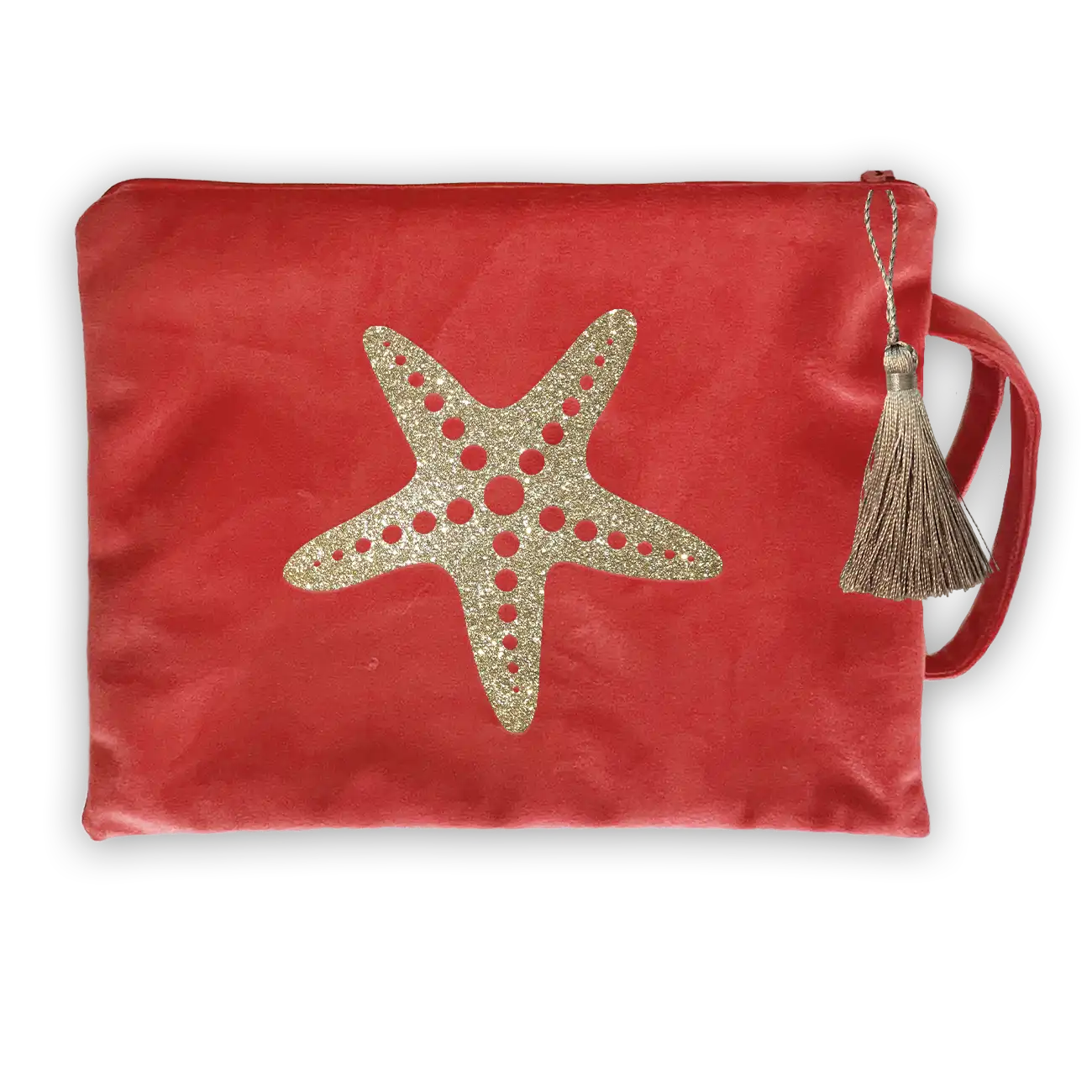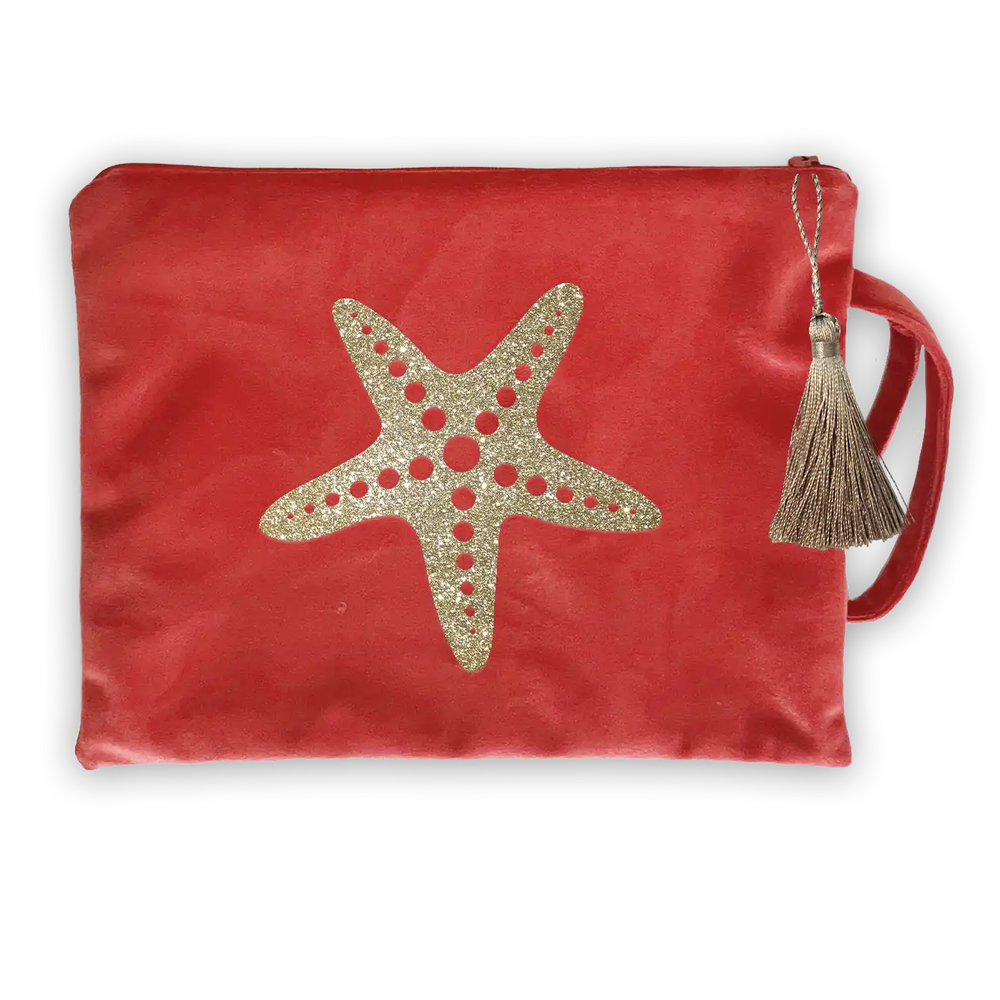 aus feinem Samt oder Leinen sind gefüttert und werden von Hand mit originellen Print Motiven aus Samt oder Glitzer verziert. Die süße Tasche kann man als Clutch tragen oder als zusätzliche „all-in-one bag“ in einer großen Shopper Tasche einsetzen.