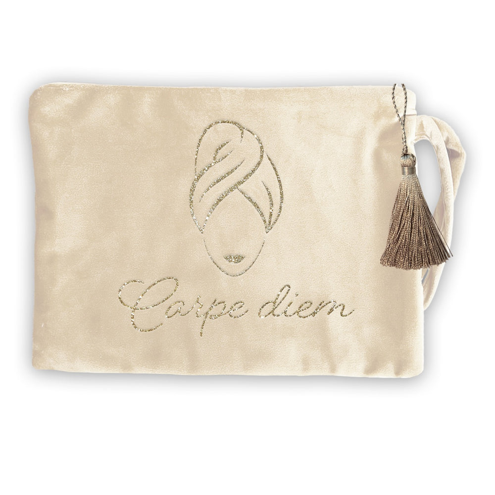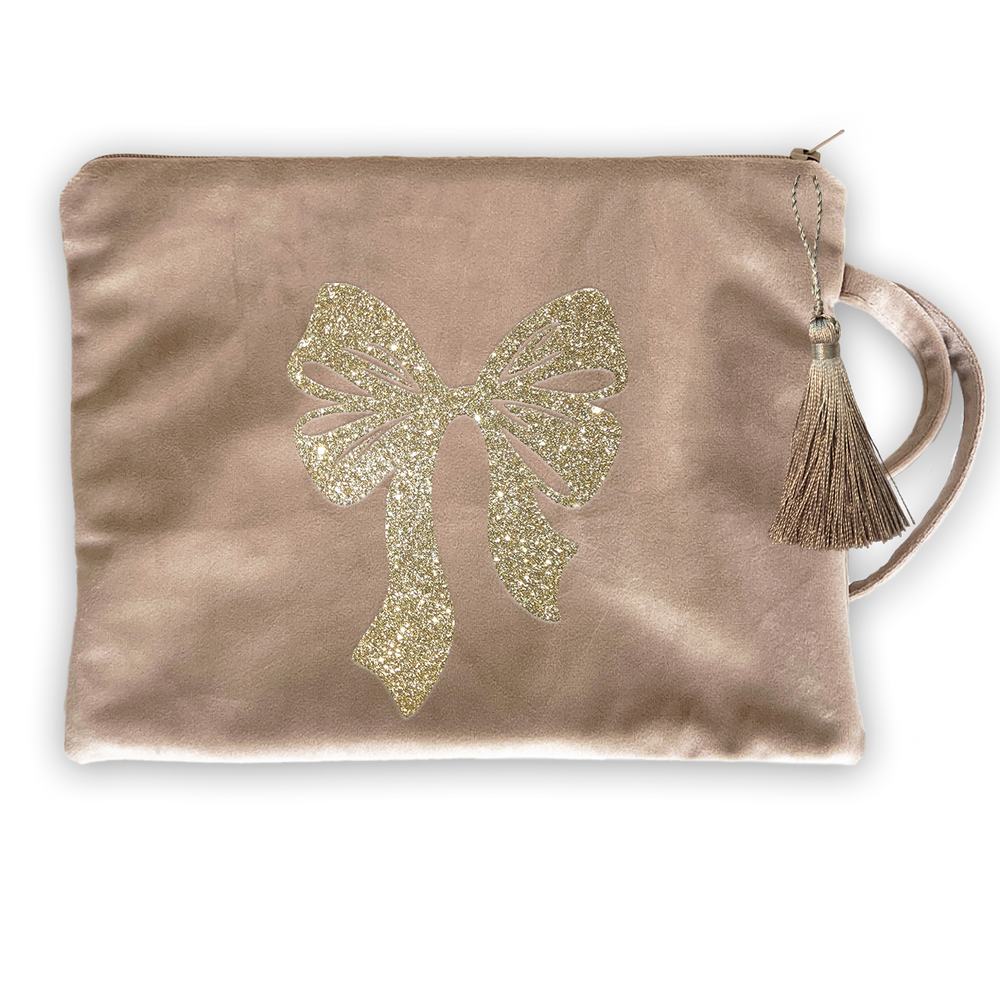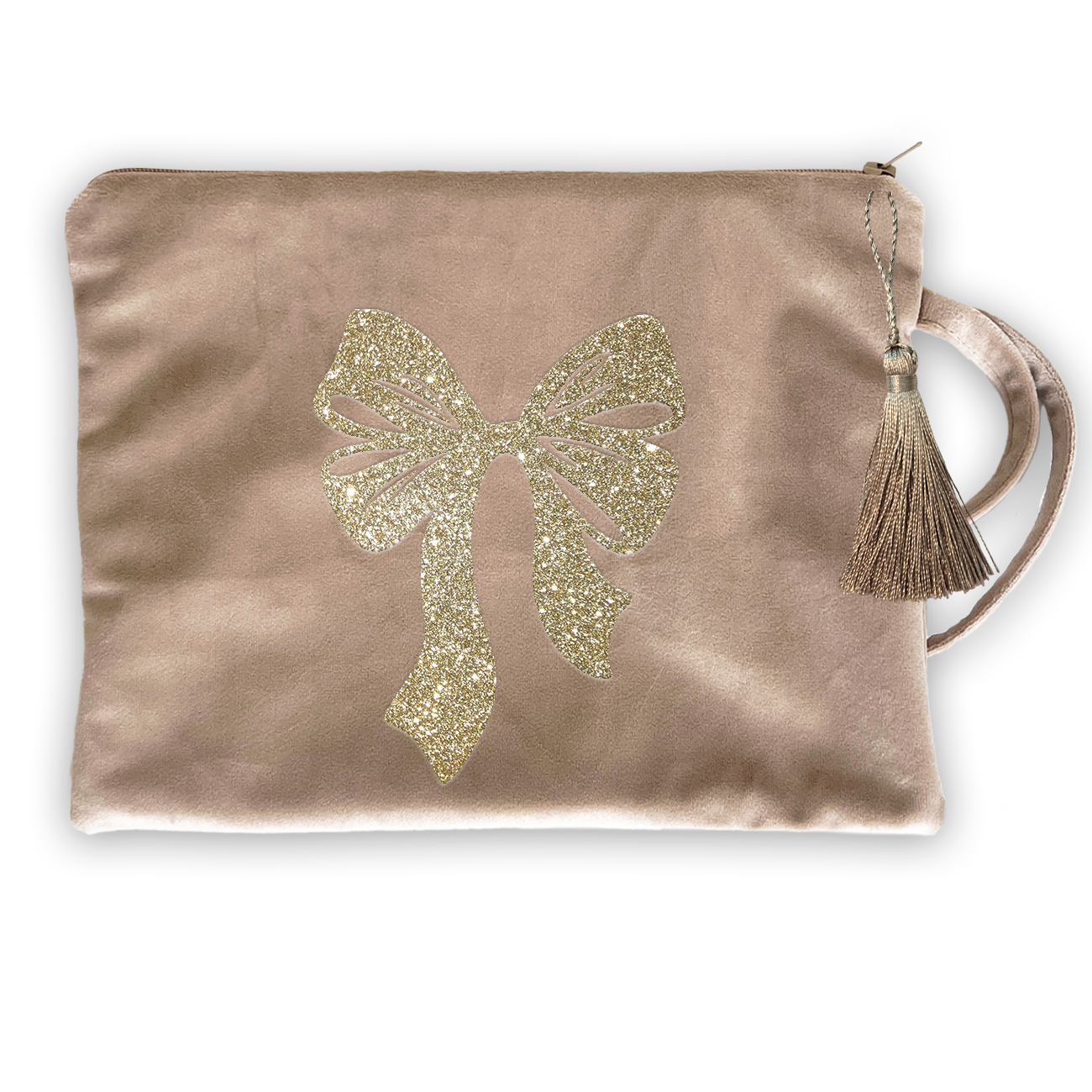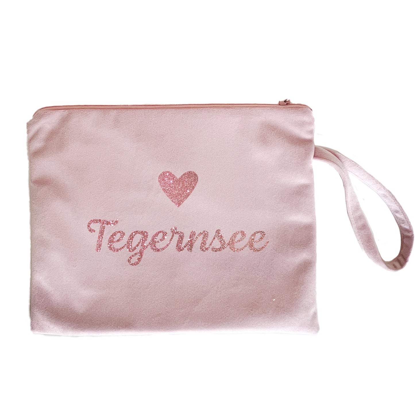 Ausserdem ist sie ein hübsches Geschenk für Frauen und große Mädchen. Zum Tragen gibt es eine Samtschlaufe, am Reissverschluss hängt eine trendige Satin Quaste.