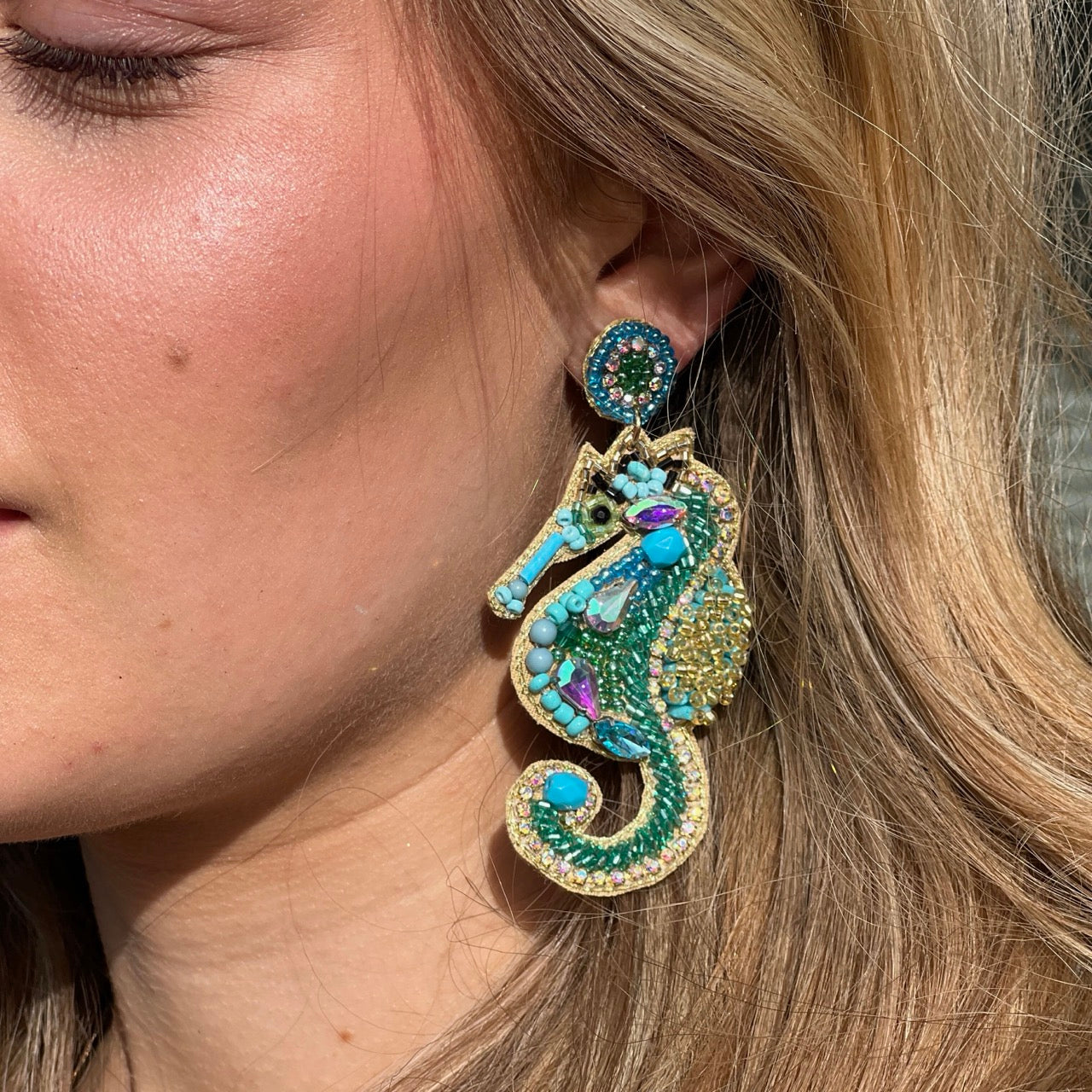 Mit diesen hinreißenden Seepferdchen Ohrringen wirst du sofort in Urlaubsstimmung versetzt. Die funkelnden kleine Perlen widerspiegeln allen Farbe des Meeres und bringen dir das Gefühl am Meer zu sein ganz nah. Ergänze dein Sommer Outfit um dieses zauberhafte Accessoire .