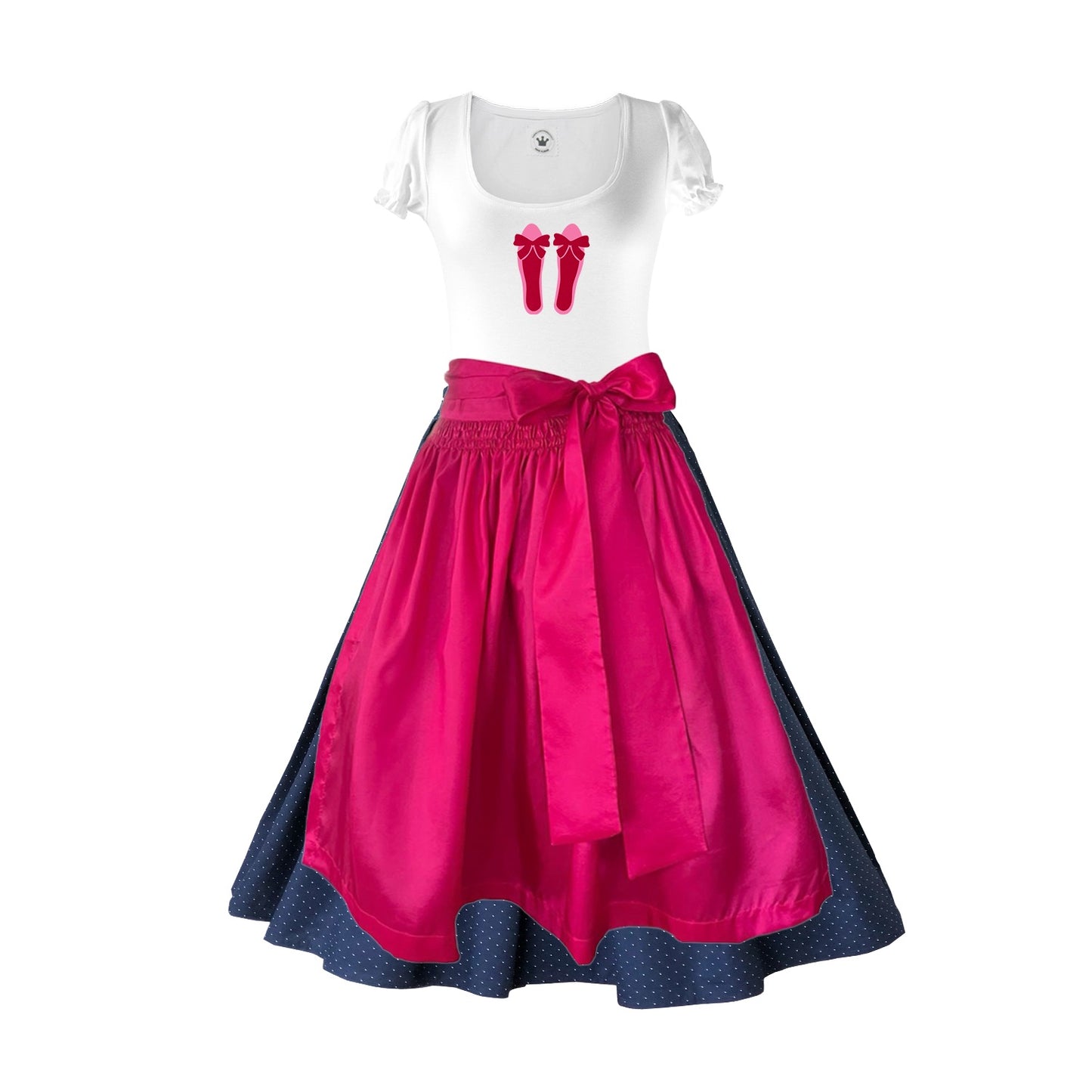 Ein echter Hingucker ist das Dirndl natürlich im Partnerlook mit Ihrer Tochter! Unser Damen Dirndl ist eine neue Variante des klassischen Dirndls, jedoch ist es bequem und feminin zugleich. Das Highlight ist unser Dirndl T-Shirt - denn wir verzichten auf das Mieder und ersetzen es durch ein edles Shirt mit Trachten Motiv. Das Besondere ist die Wandlungsfähigkeit: es ist 3-teilig und besteht aus Rock, Schürze und Dirndl Shirt. Tragen sie das Shirt mit Trachtenmotiv und dem Janker auch mal zur Jeans oder kombinieren den Rock mit einer weißen Bluse.