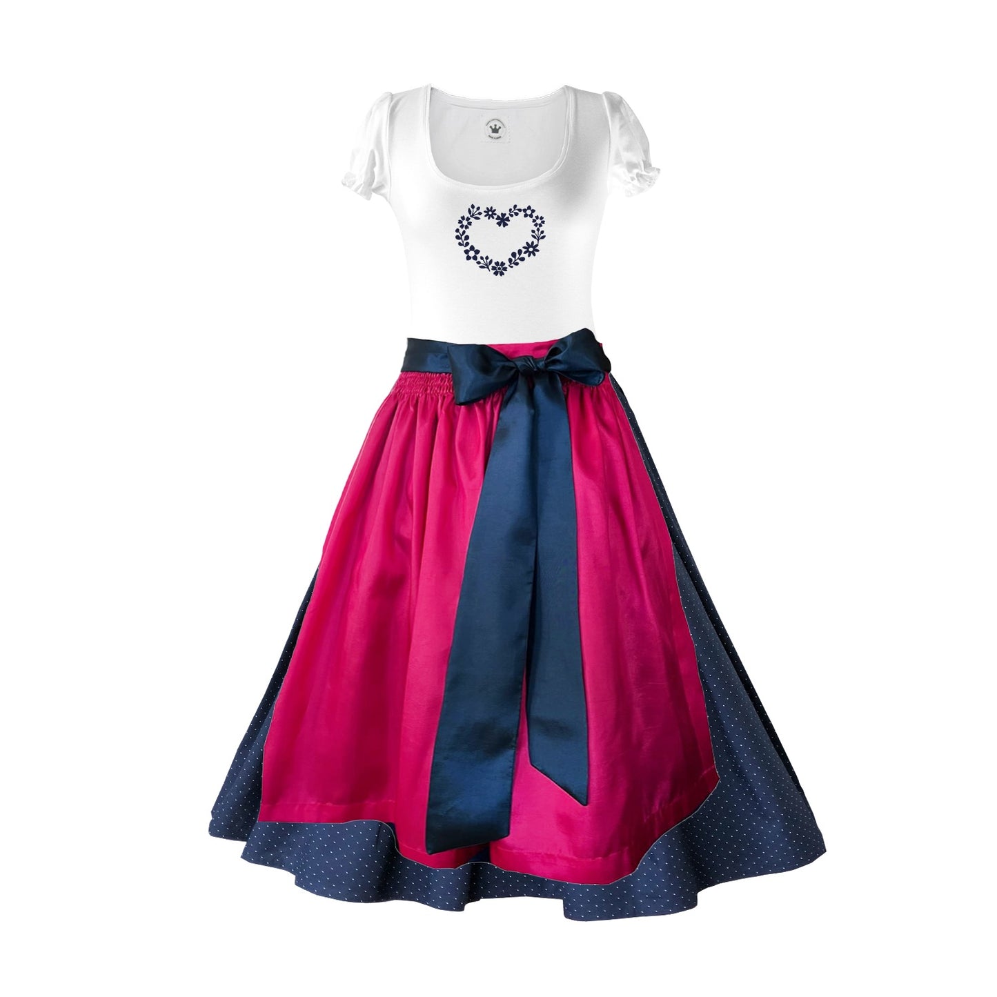 Achtung: Im Lieferumfang ist das 3-teilige Dirndl (bestehend aus Rock, Schürze und Shirt) Der eventuell abgebildete Janker oder Accessoires wie Tücher oder Taschen können sie separat erwerben.