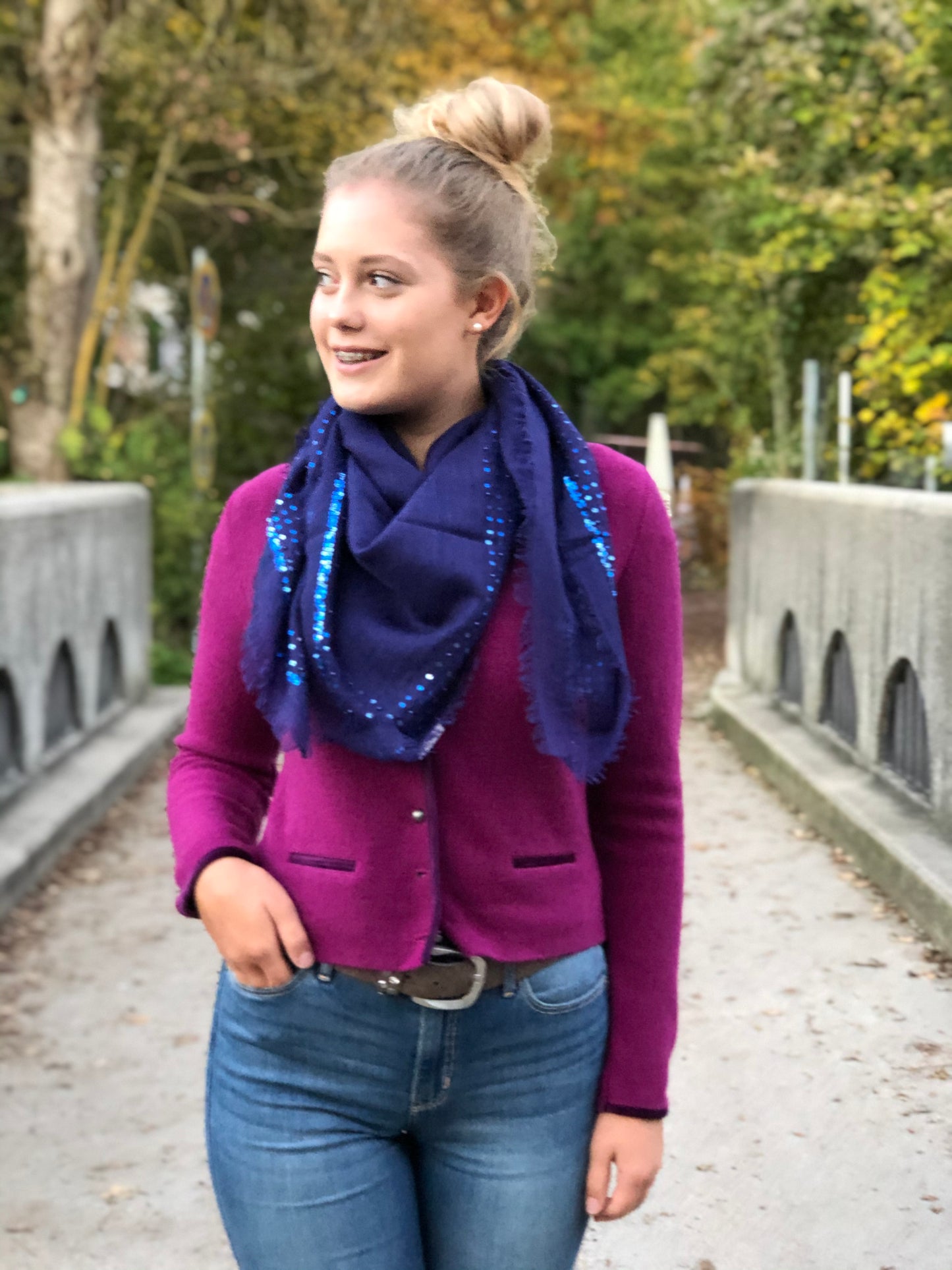 dunkelrotes Wolltuch mit Pailletten