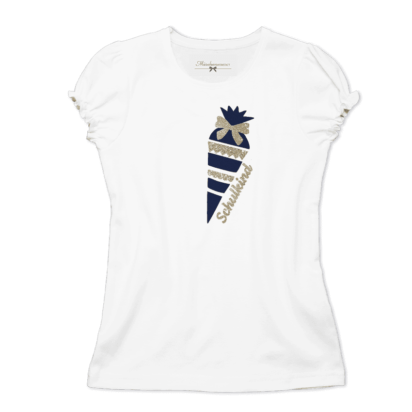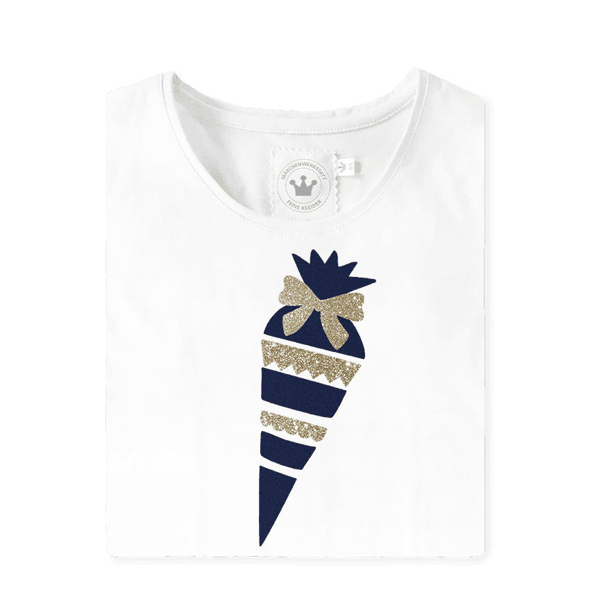 Kurzarm Schulanfang T-Shirt Zuckertüte blau Gold Samt Glitzer