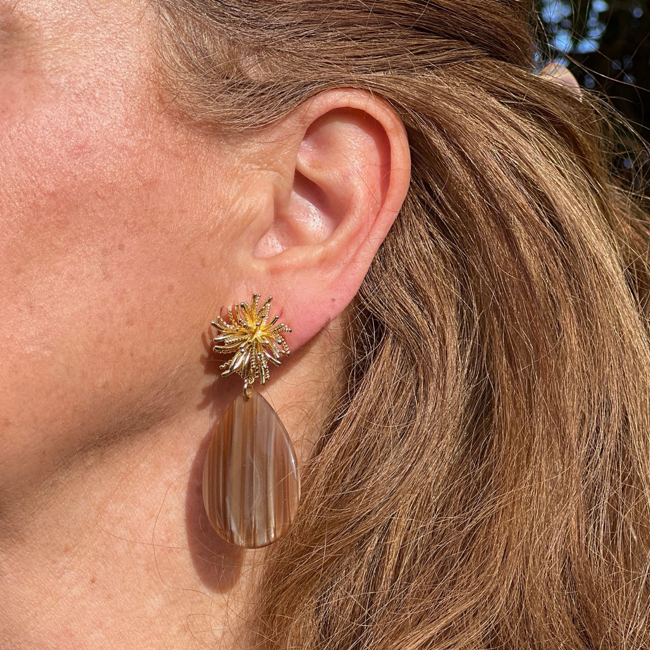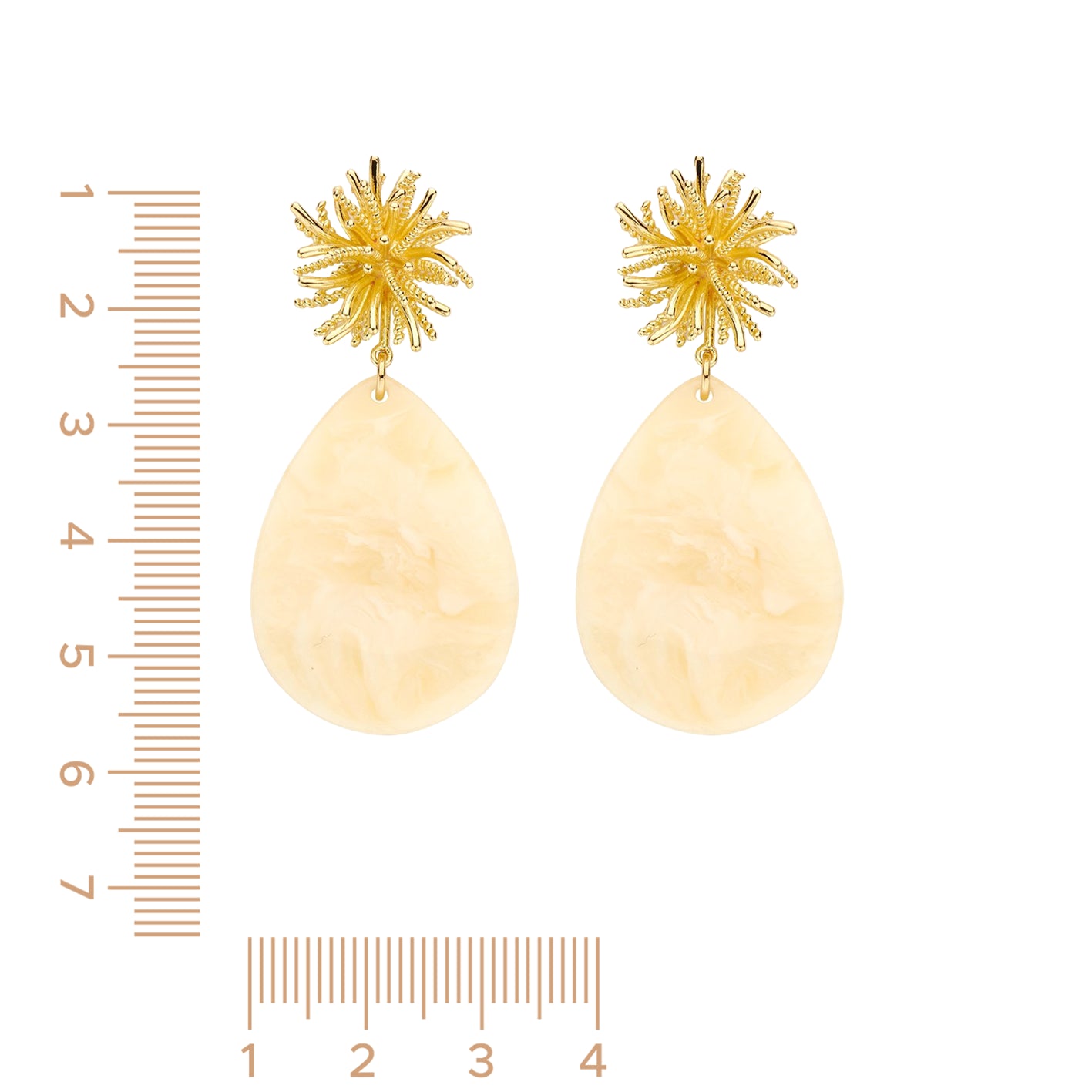 Erhalten Sie den perfekten Look mit diesen herrlichen beige-goldenen Statement Ohrringen! Die edle Perlmutt Optik der Ohrringe und das ideale Gewicht von ca. 5,5 cm machen sie zu einem angenehmen Begleiter für jeden Anlass. Ob zum Sommerkleid, einem beigen Leinen Blazer oder simple zur Jeans mit weißem Shirt, sie passen zu vielen Outfits.