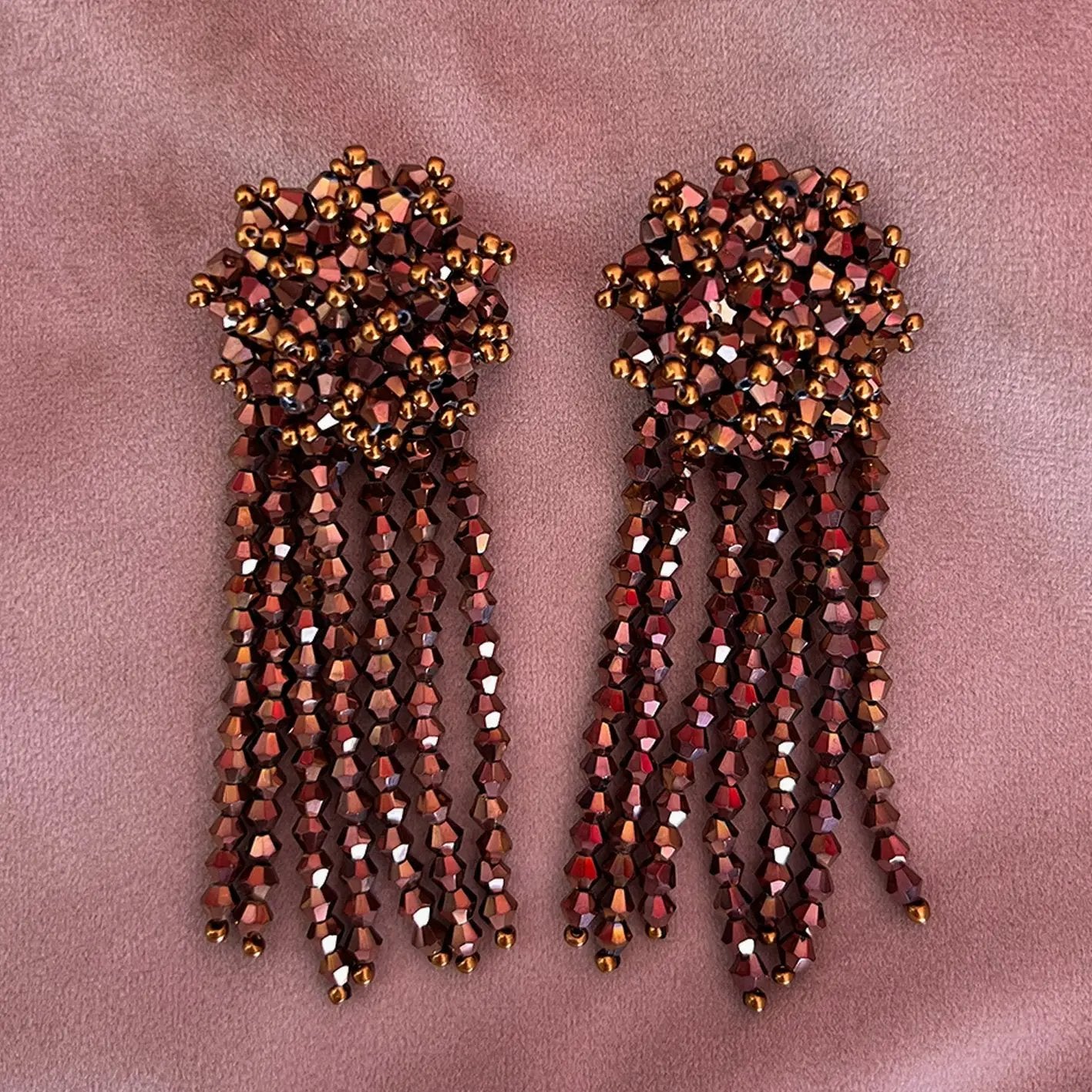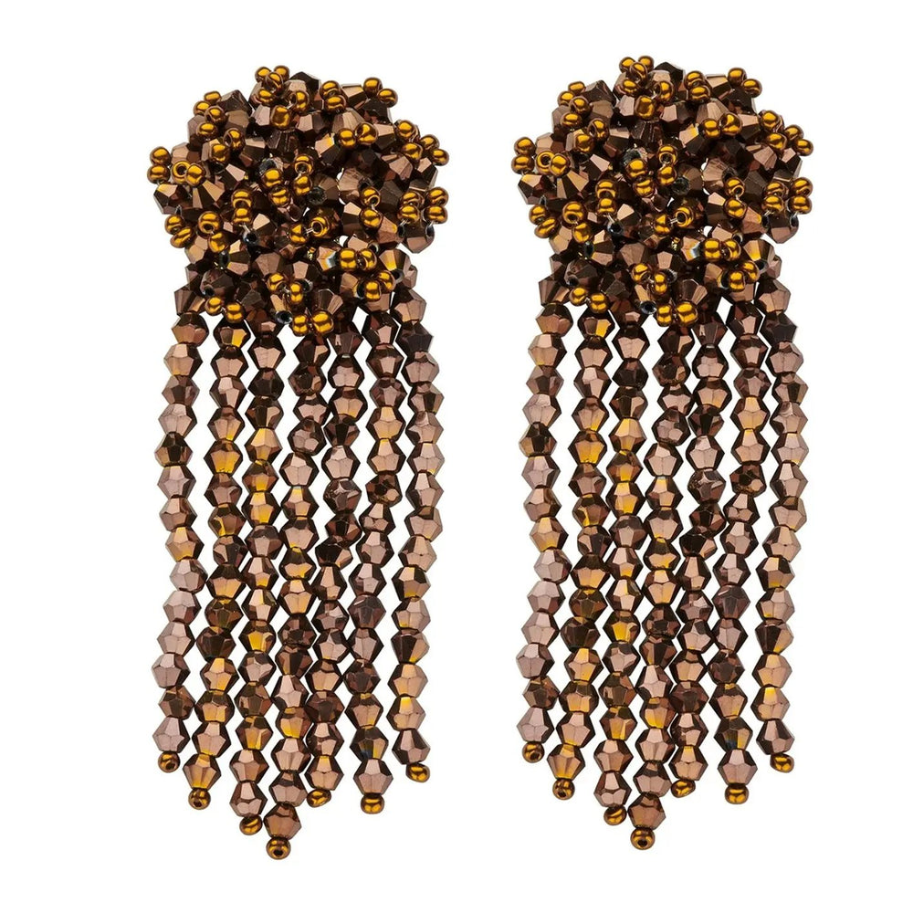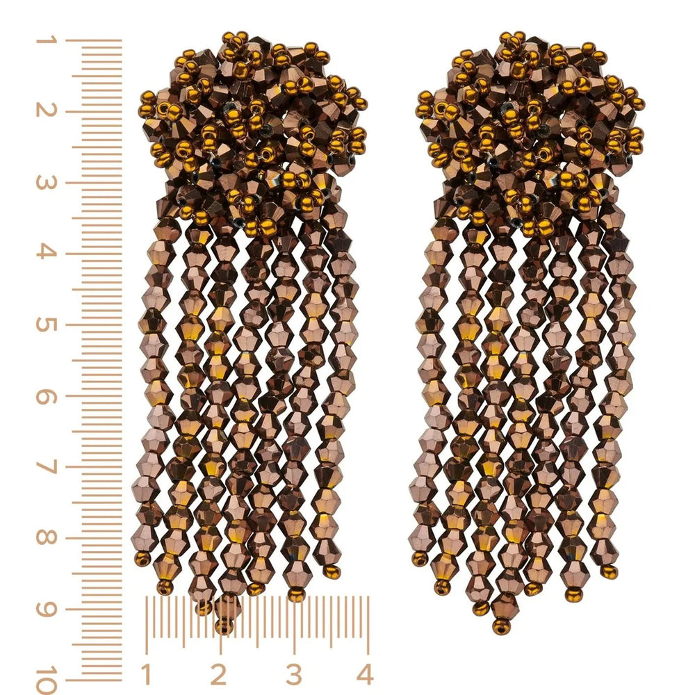 Bringen Sie mit diesen wunderschönen Quasten Statement Ohrringen "New York" in der edlen Farbe braun, Schwung in Ihren Look. Die mit funkelnden Kristallperlen besetzten langen Quasten Ohrringe sind die perfekte Ergänzung für jedes Outfit! Mit diesen trendigen Statement Ohrringen setzen Sie ein deutliches Style-Statement und verleihen einem lässig-urbanen Outfit eine elegante Note.