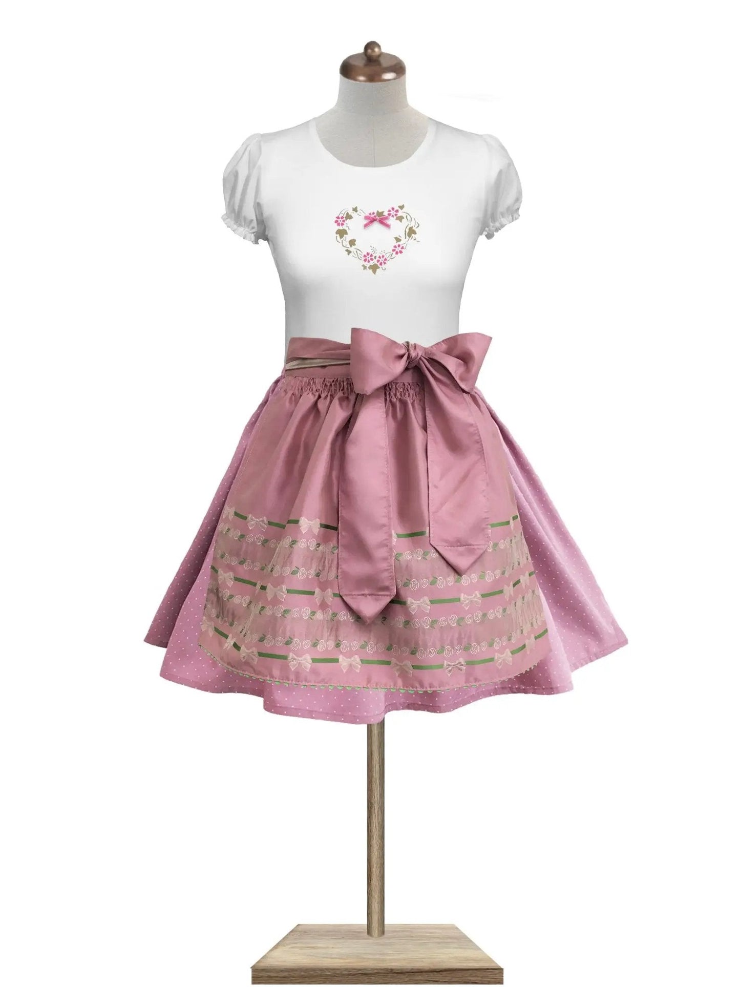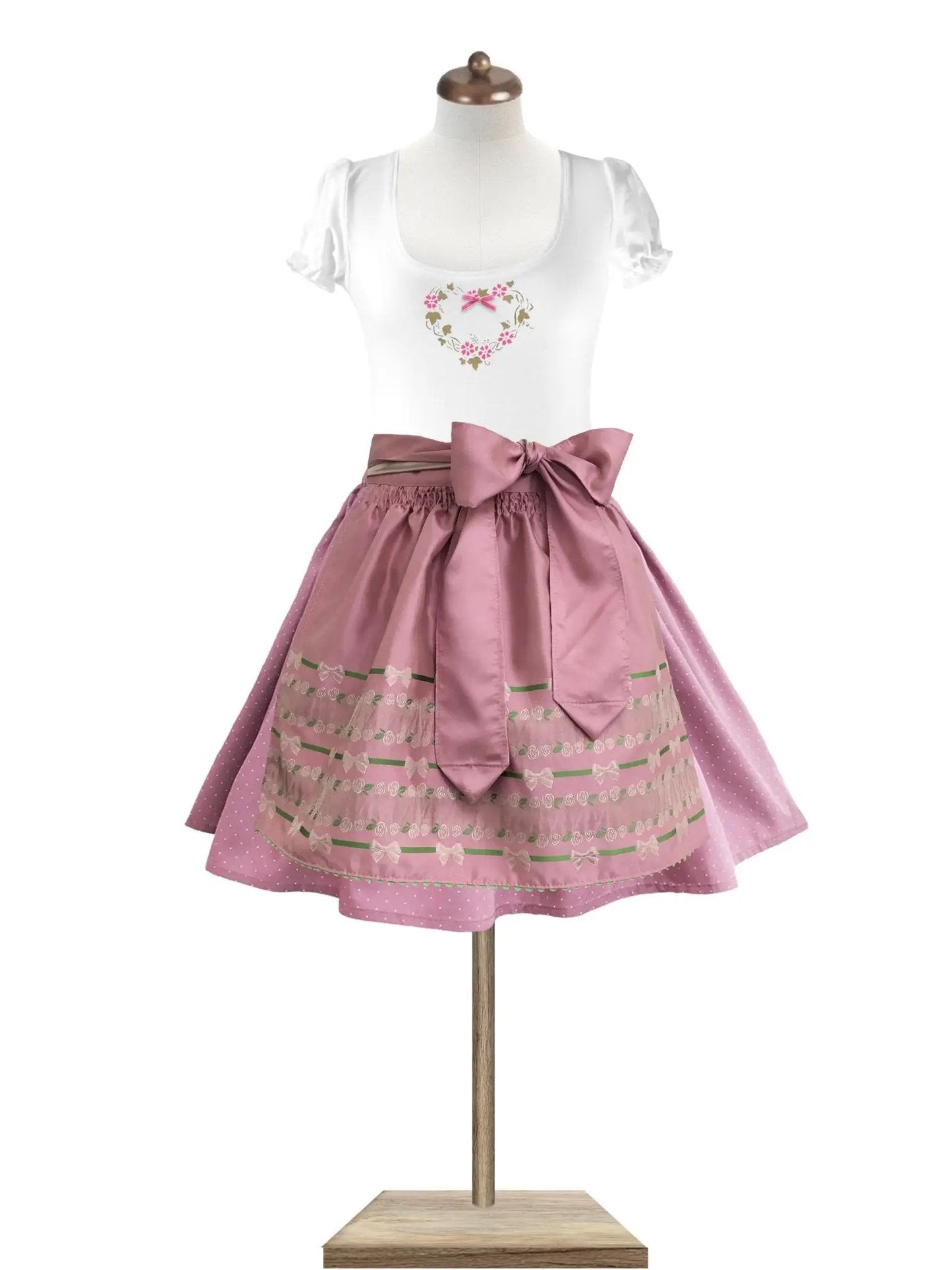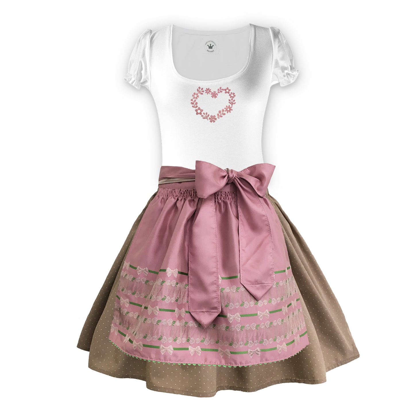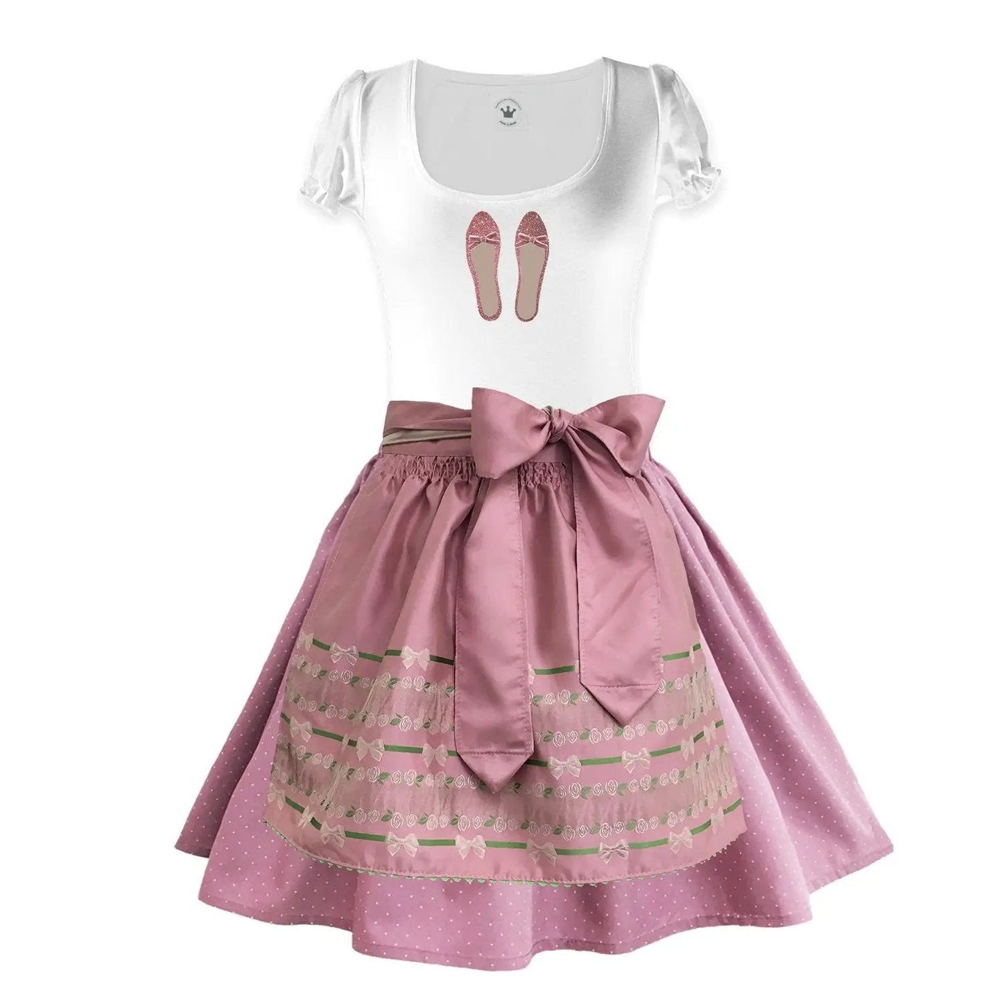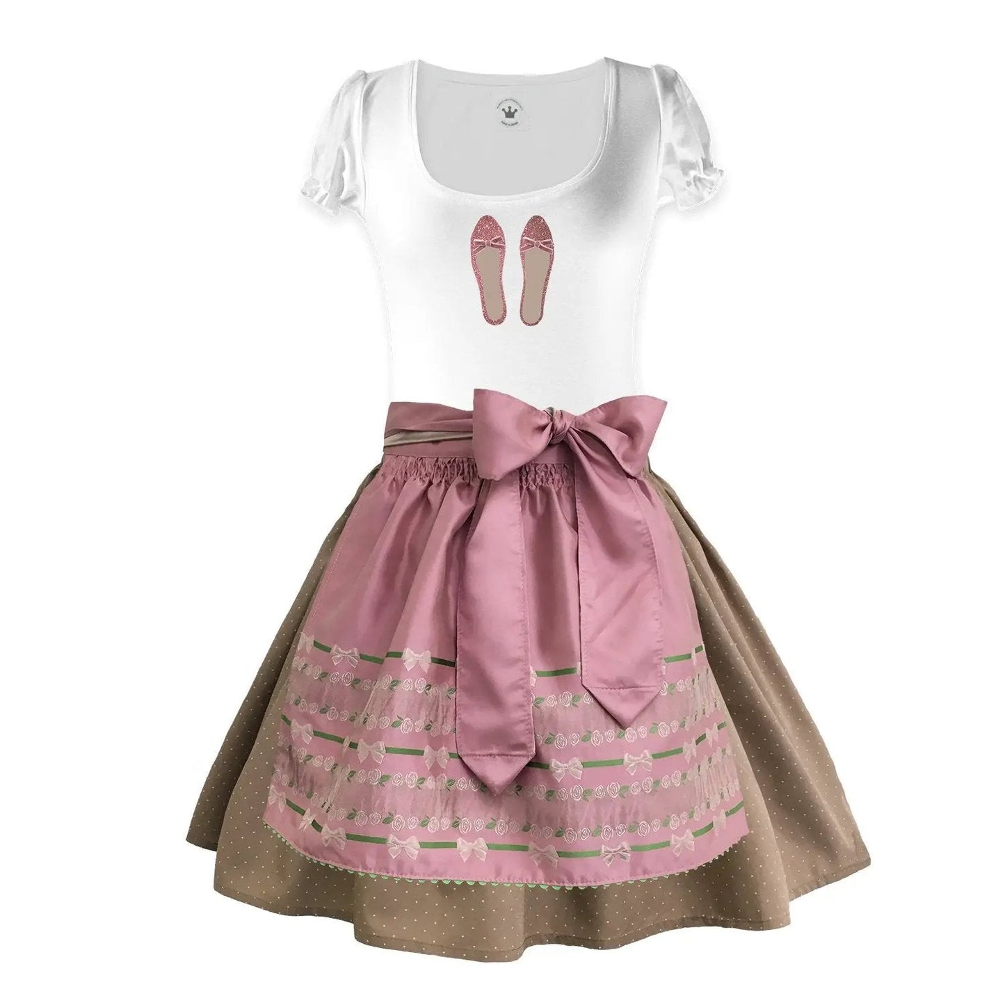 Der beige oder rose Tupfenrock wird kombiniert mit einer feine Schürze aus Hollender Seide in rose mit kleinen Schleifen und einem Dirndlshirt mit Trachtenmotiv. Die aufwendigen Motive werden alle von Hand in Bayern gearbeitet. Wählen sie unter "Motiv" welches Shirtmotiv (ob Herz oder Ballerina) sie wünschen. Falls es mal nicht so schick sein soll, dann lässt man die Schürze weg und trägt den Rock einfach solo mit dem Shirt. Ergänzen sie ihr Dirndl mit einem zweiten Shirt, dann hat man die Möglichkeit zu wechseln falls das Lieblingsshirt mal in die Wäsche muss.)