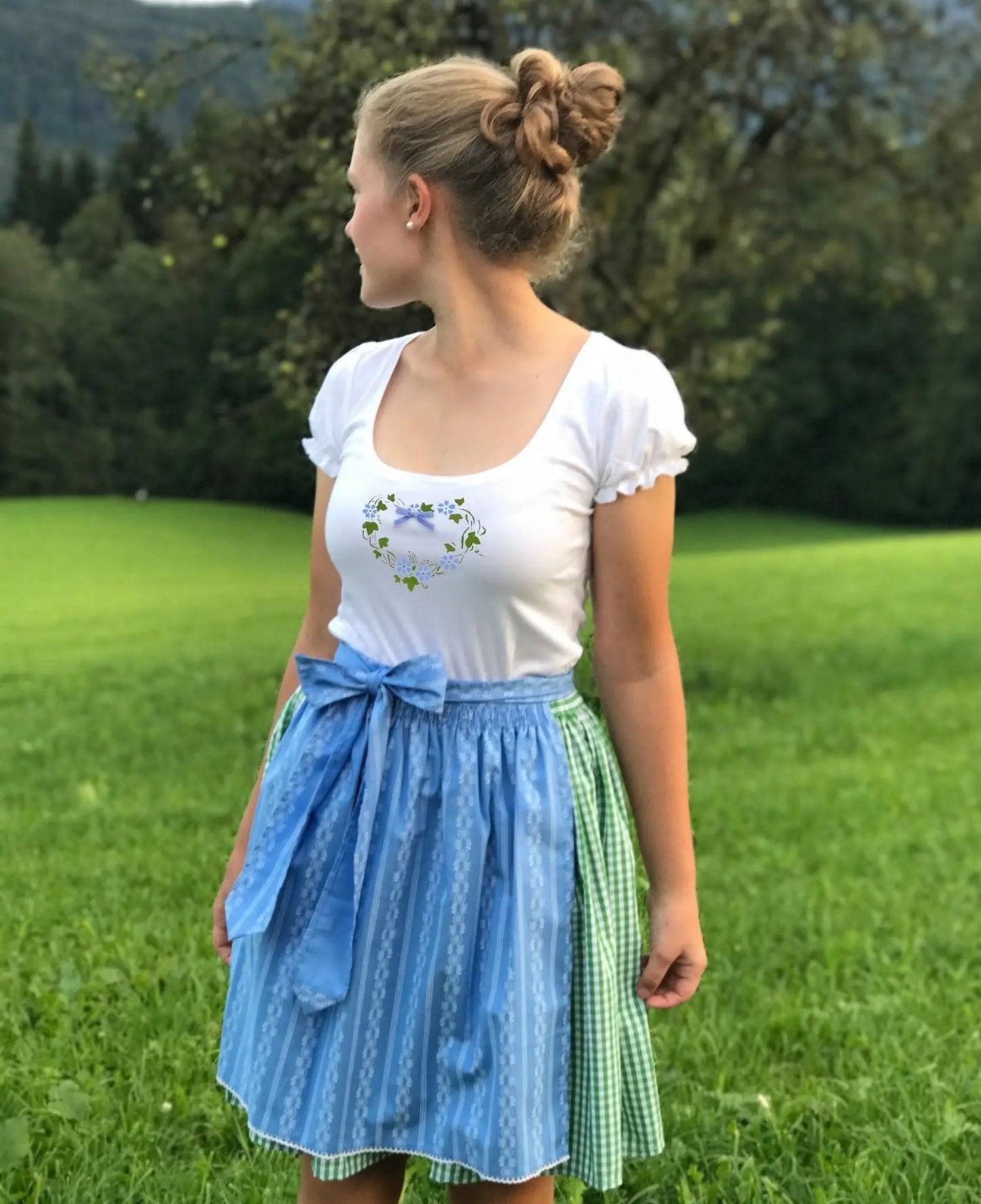 Regulärer Preis €159,00Unser Teenager Dirndl ist für Mädchen zwischen 14 und 18 Jahren. Das 3-teiliges Set besteht aus einem Rock mit Gummizug, der Schürze und einem Dirndlshirt. Der Rock ist flexibel für eine Taillenweite von 60 bis 70 cm und hat eine Länge von 60 cm. Die Rocklänge ist knieumspielend, je nach Körpergröße. Die Mädchen können das Shirt mit oder ohne Dekolleté wählen. Eine tolle Alternative zum "echten" Dirndl, da es kombinierbar ist und mitwächst. Ein Highlight in unseren Kollektionen ist der Partnerlook! Sie finden bei uns auch das farblich passende Dirndl Set für die Geschwister und die Mama.