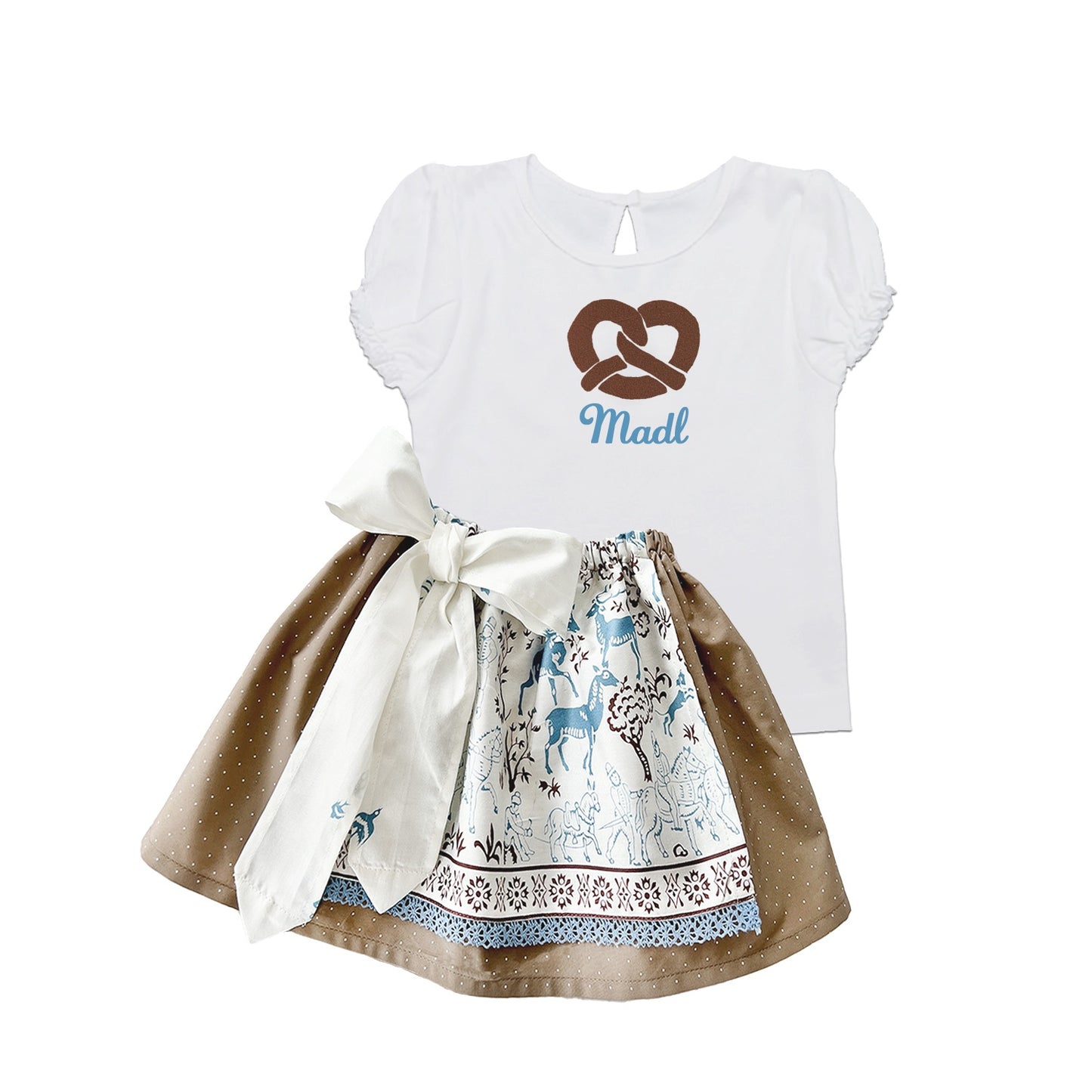 - 2-teilig: Rock mit angenähter Schürze + T-Shirt
