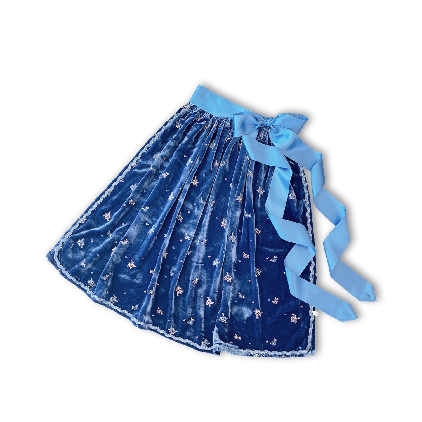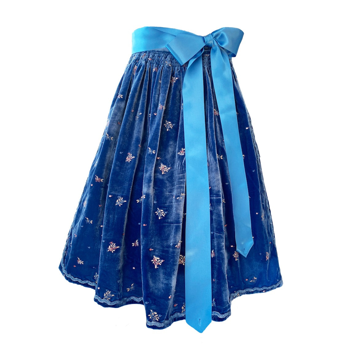 Damen Dirndlschürze Midi Samt hellblau bestickt