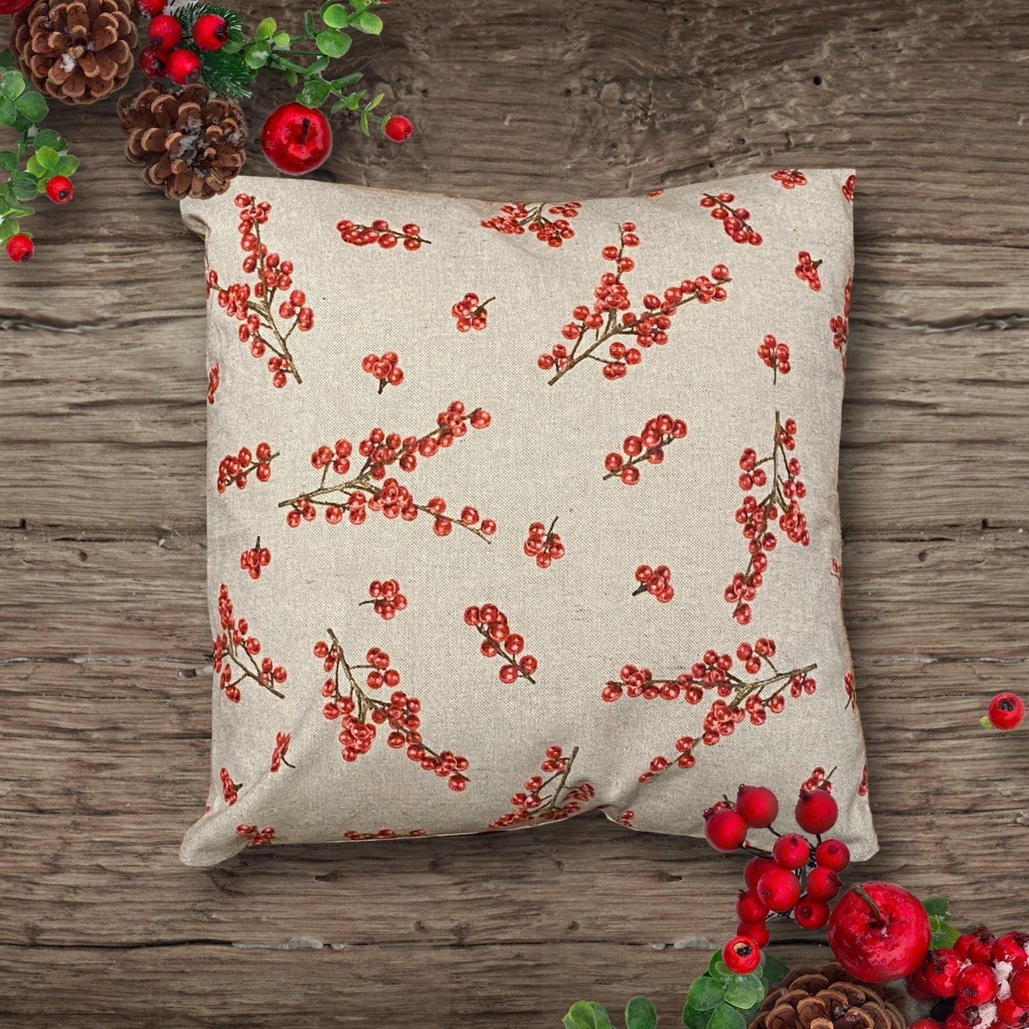 Mit diesen Kissen bringen sie Skiurlaubs Flair in ihr Zuhause. Mit diesen Kissen bringen sie Hütten Flair in ihr Zuhause. Dekokissen "Tegernsee" ist aus Baumwollstoff in Leinenoptik- bedruckt mit roten Beeren Motiv. Jedes Kissen ist in Unikat, durch die großflächige Muster sind die Kissen immer unterschiedlich. Die Auswahl des genauen Motives ist Zufall und kann nicht genau vorher bestimmt werden.