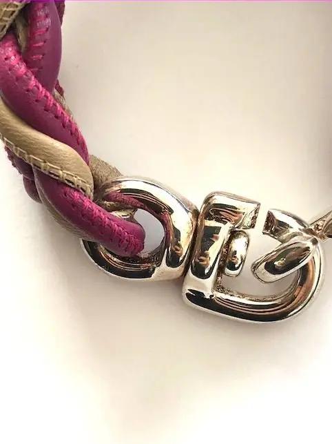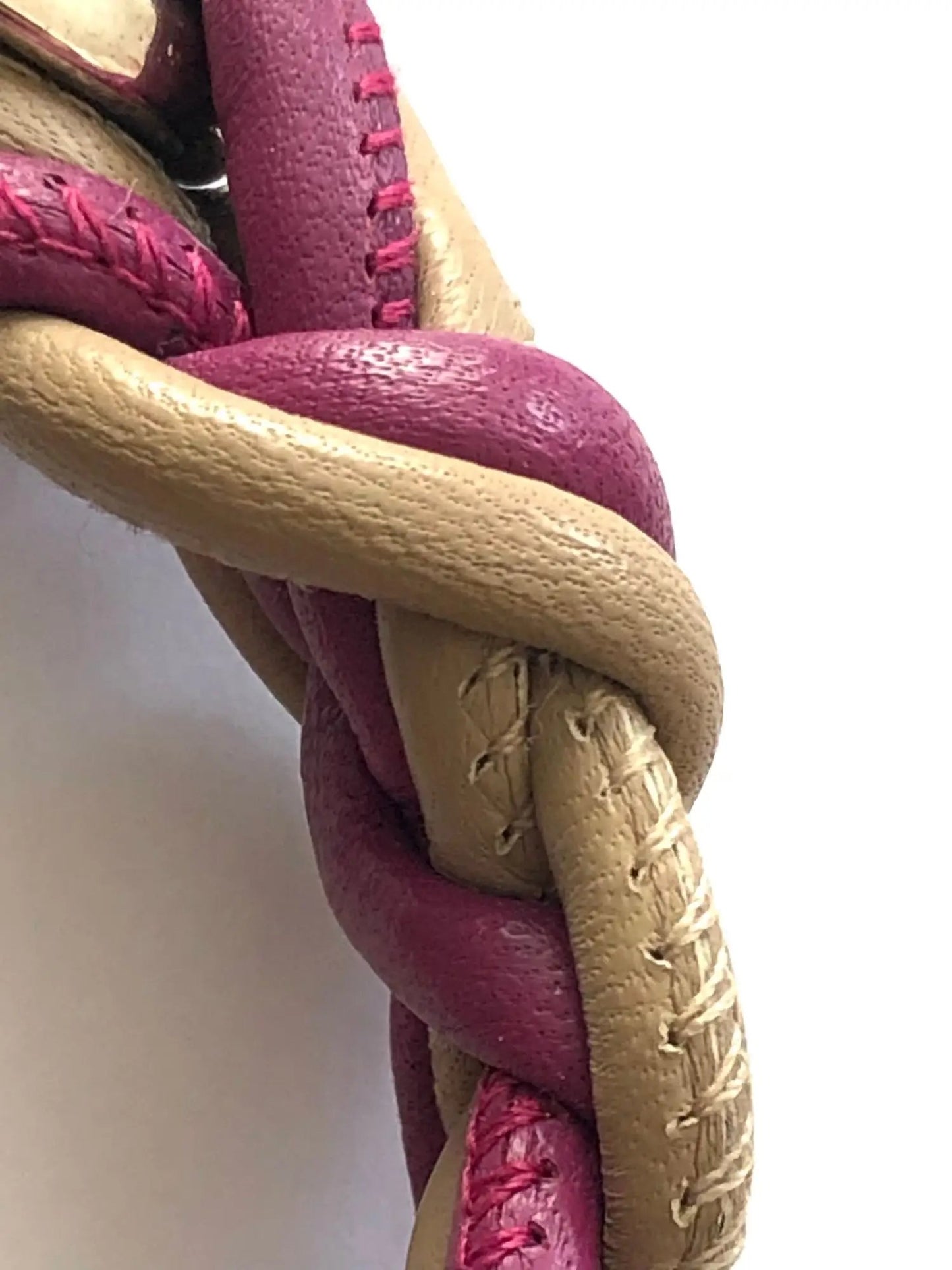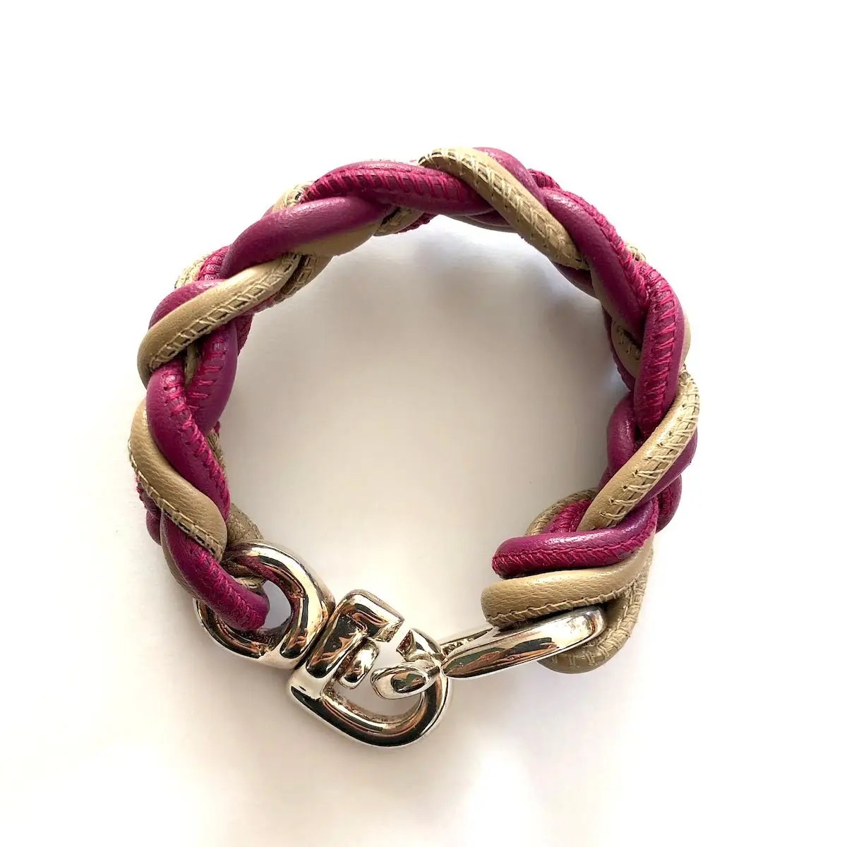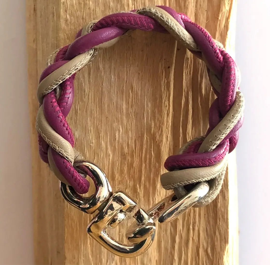 Regulärer Preis €49,00Der geflochtene Style und die Verbindung von edlem beerenfarben und karamell verleihen diesem Armband einen ganz besonderen Charme. Lederarmbänder sind mittlerweile in jedem Schmuckkästchen zu finden und immer ein wunderschönes zeitlloses Geschenk an die beste Freundin oder ich selbst. Das Schmuckstück ist aus hochwertigem Nappaleder mit einem massiven silbernen Verschluß.