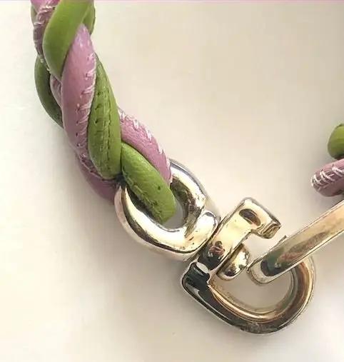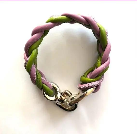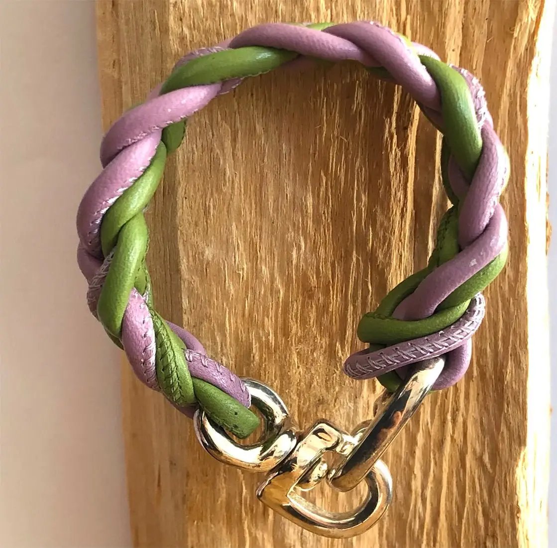 Regulärer Preis €49,00Der geflochtene Style und die Verbindung von zarten flieder und grün verleihen diesem Armband einen ganz besonderen Charme. Lederarmbänder sind mittlerweile in jedem Schmuckkästchen zu finden und immer ein wunderschönes zeitlloses Geschenk an die beste Freundin oder ich selbst. Fein abgesteppt und mit einem massiven silbernen Verschluß.