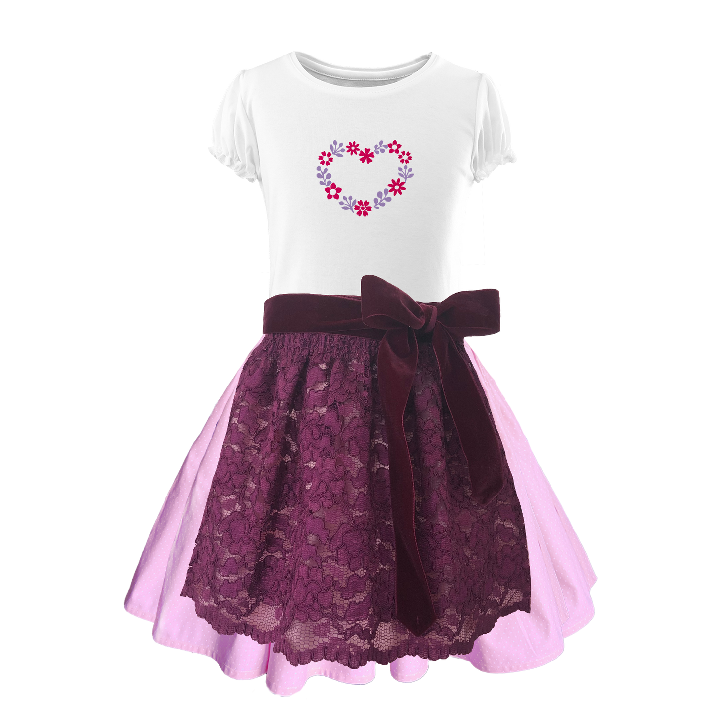 Unser Kinder Dirndl ist eine neue Variante des klassischen Dirndls, jedoch ist es bequem und vielseitig kombinierbar. Das Besondere ist die Wandlungsfähigkeit, denn es ist 3-teilig und besteht aus Rock, Schürze und Dirndl Shirt. Dank des bequemen Gummizuges am Rock können die Kinder sich ganz ungezwungen bewegen, tanzen und toben ohne das etwas drückt oder zwickt. Ohne Schürze kann man den Rock und das Shirt toll mit einer Jeansjacke und Sneaker kombinieren Abgesehen davon ist es natürlich auch unglaublich praktisch, da man alle Teile einzeln waschen kann.