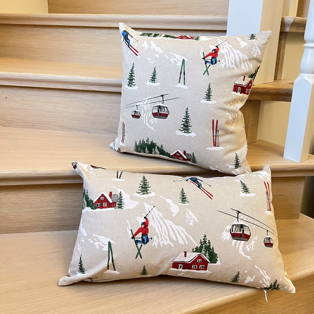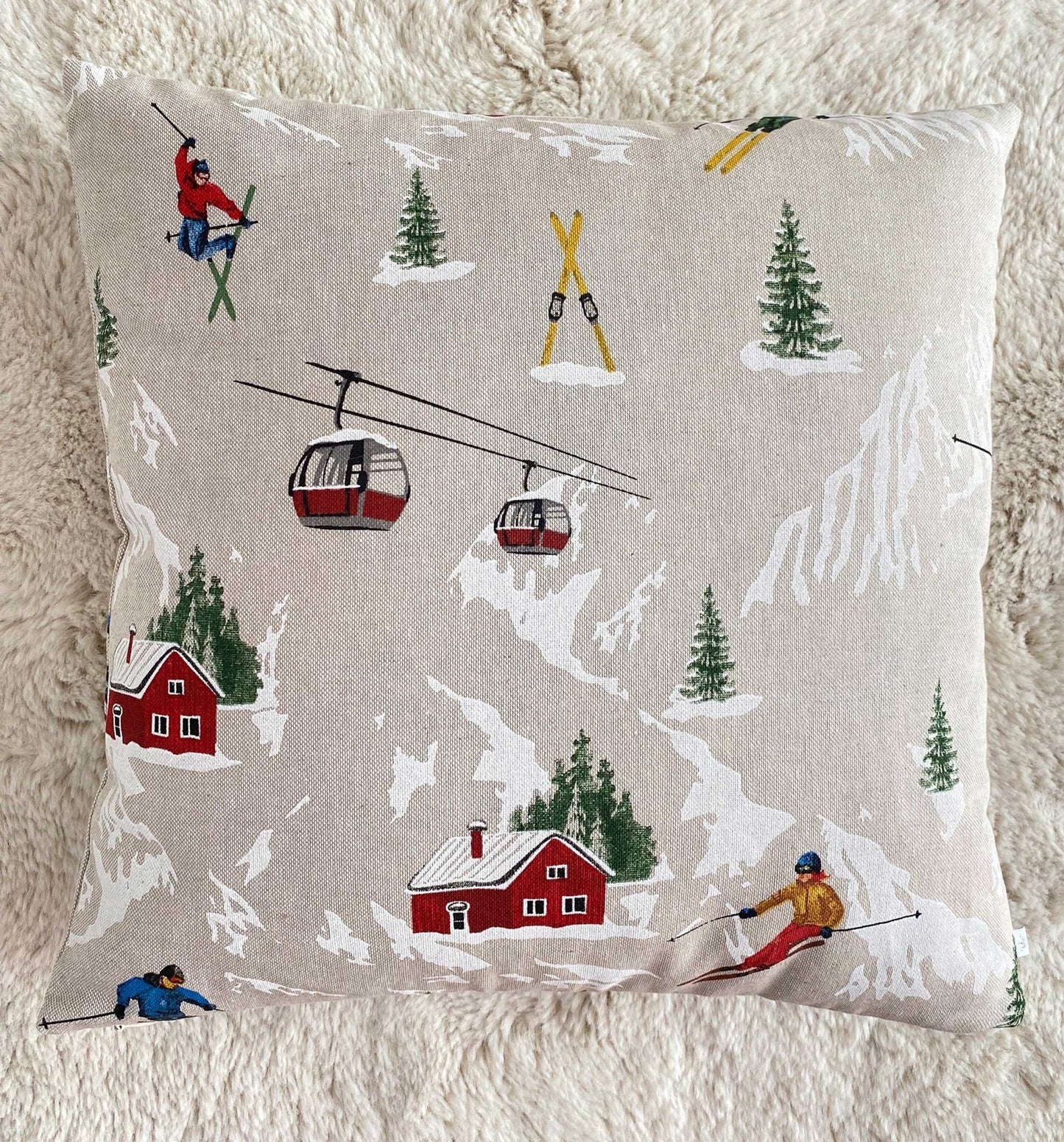 Unser absolutes Lieblings Accessoires sind Kissen im alpinen Chalet Style, genau wie diese schöne Kissen in Leinen Optik mit Skifahrer Print. Zaubert es doch sofort Winterstimmung in unser zu Hause. Der edle Druck zeigt eine Winterlandschaft, Skifahrer, eine Hütte und schneebedeckten Tannen. Alles wo von man im Winter träumt.
