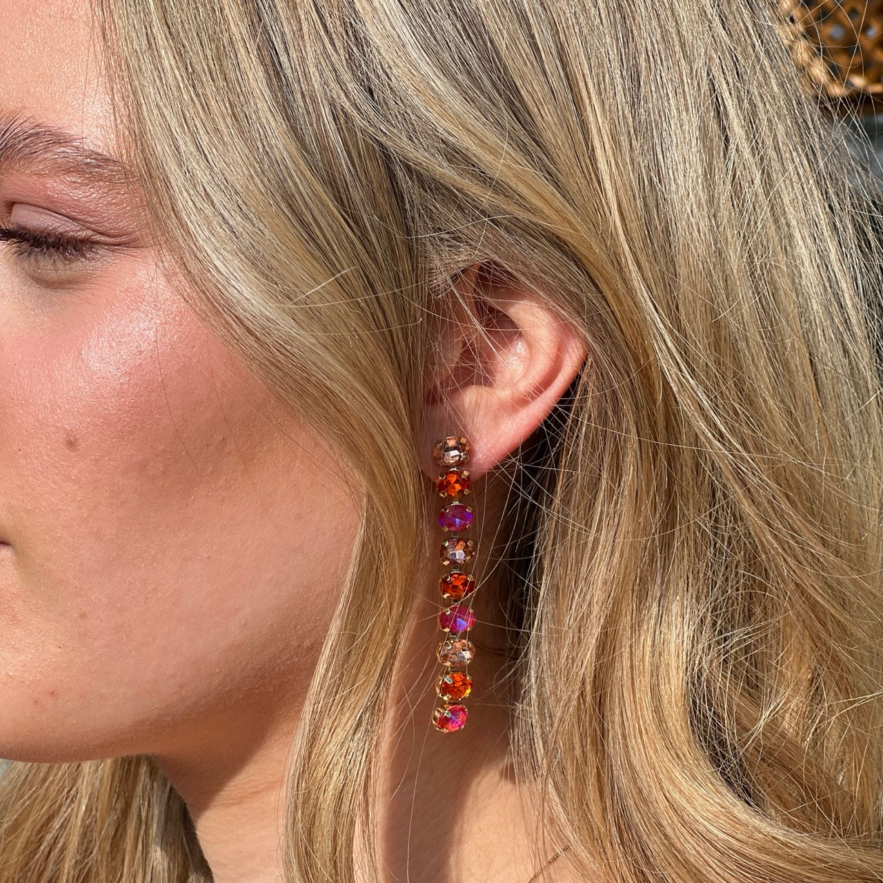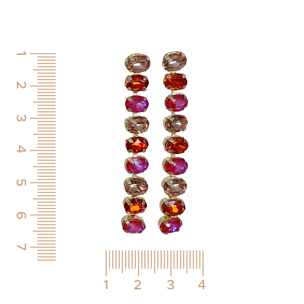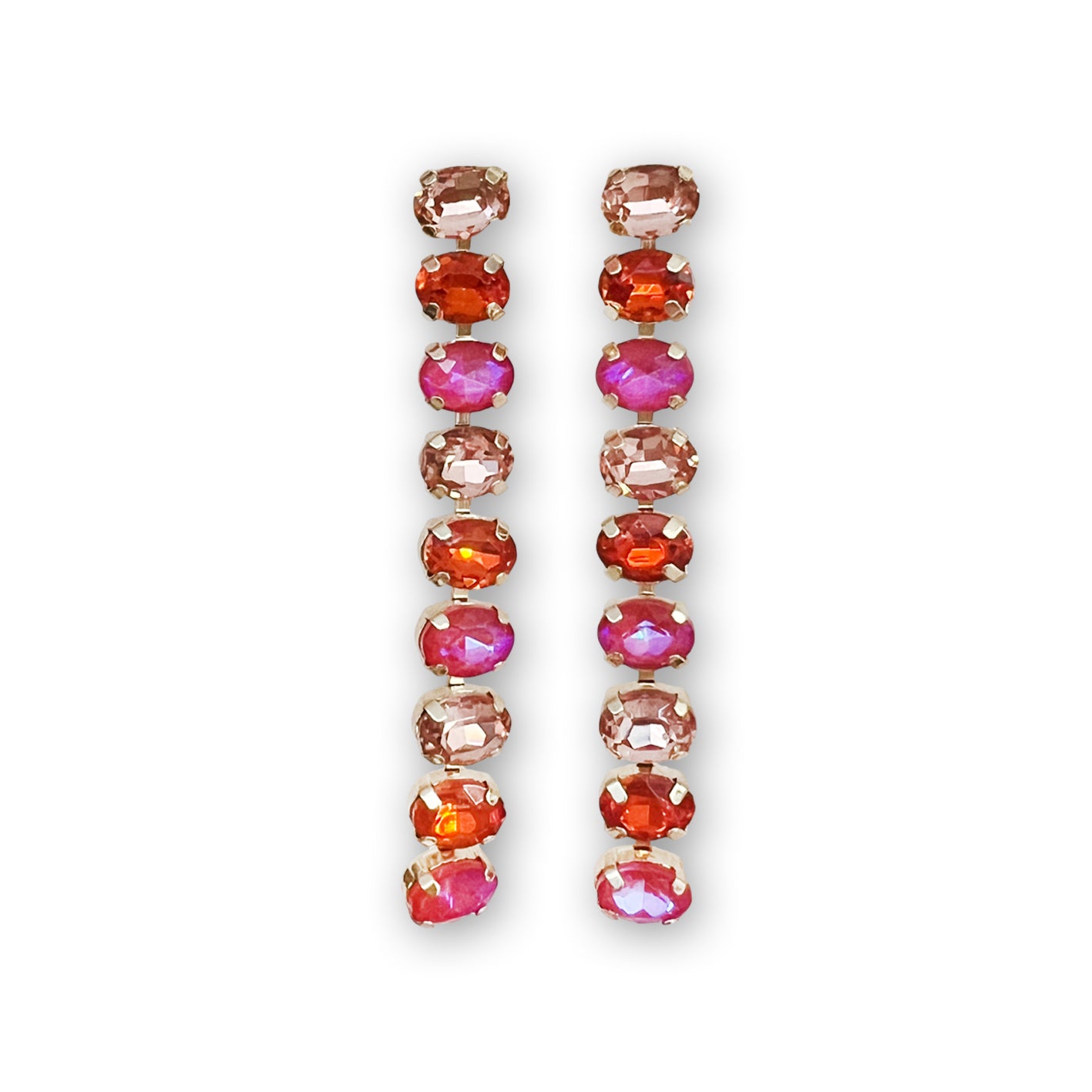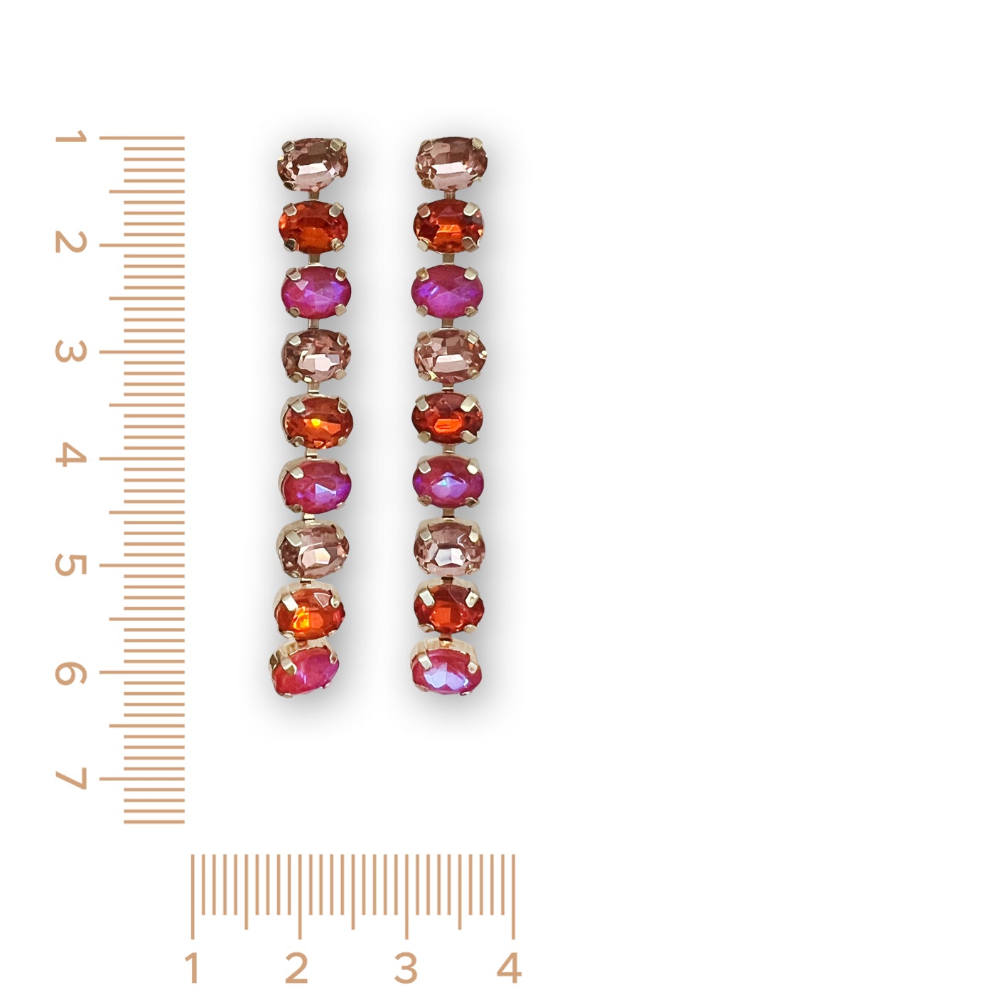 Unsere Liebe gilt den bunten Glamour-Ohrringen im Bvlgari-Stil. Die langen, zarten Ohrringe mit den bunten Steinen sind das perfekte Paar für den richtigen Glamour-Look. Sie passen zu vielen Outfits, egal ob Sommerkleid, beiger Hosenanzug oder Jeans mit weißem Shirt.
