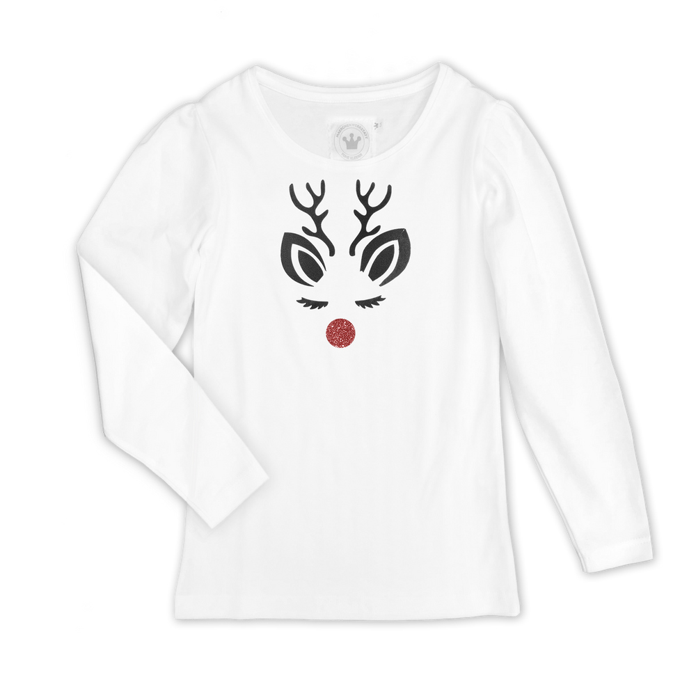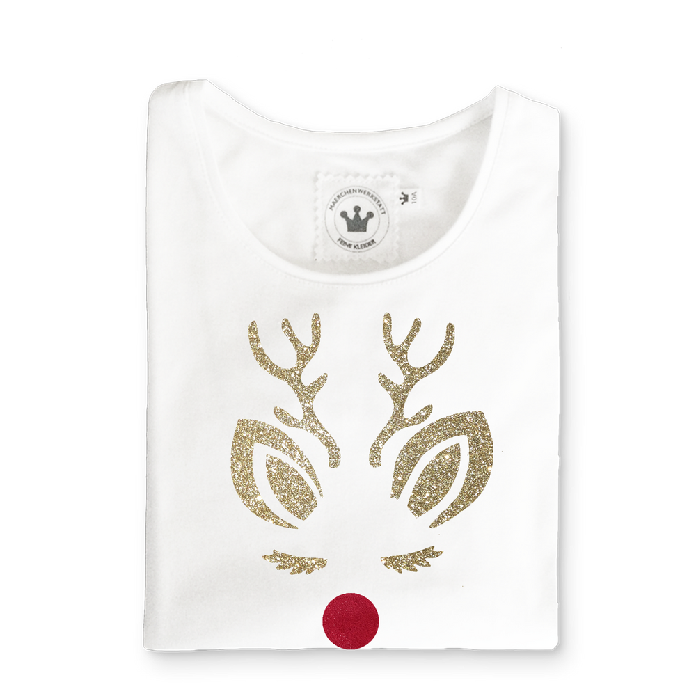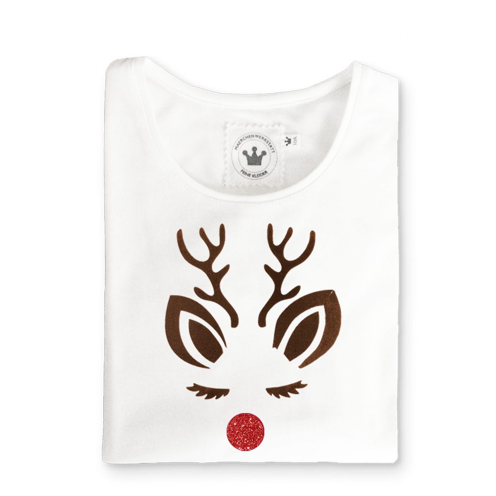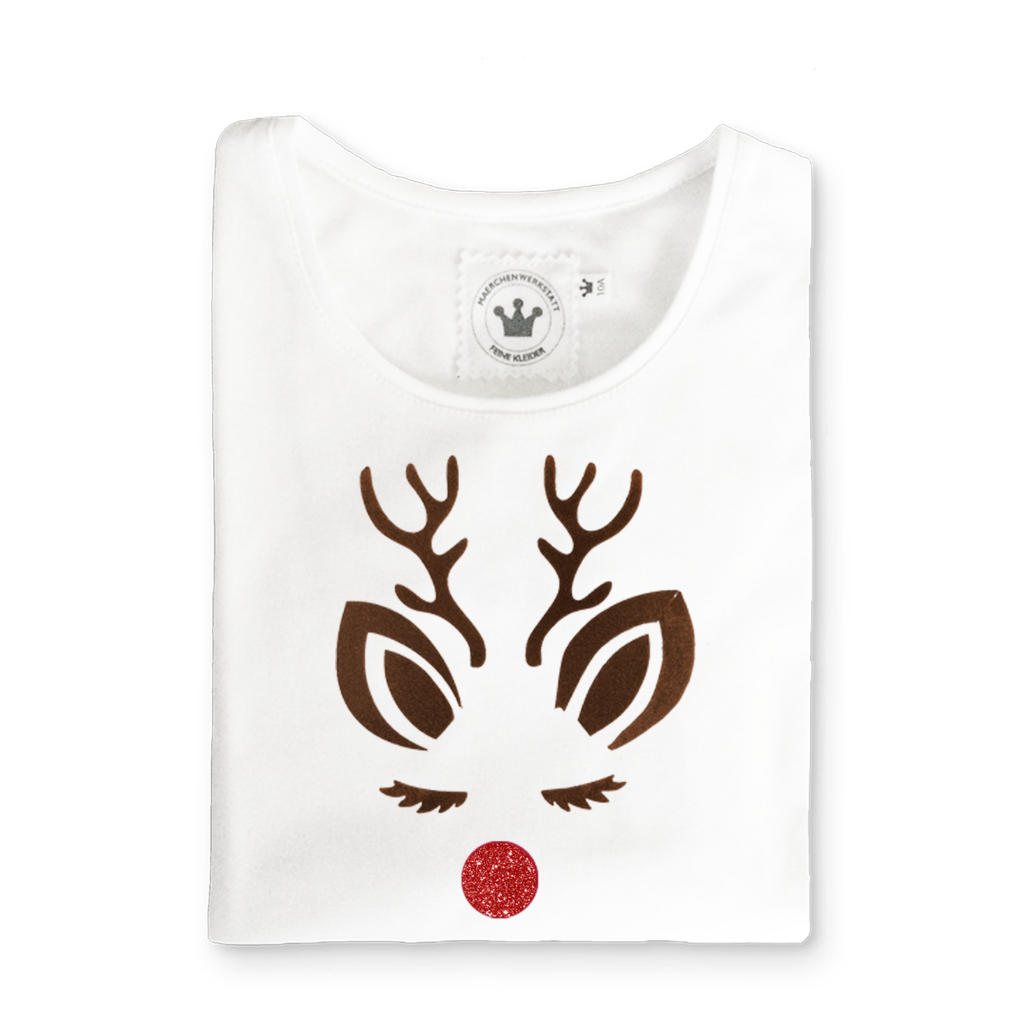Wer kennt nicht Rudolph, das kleine Rentier mit der roten Nase. Unseres besonders süß, denn er ist aus Samt, hat lange Wimpern und natürlich eine rot glitzernde Nase. Die Shirts werden liebevoll in Bayern von Hand verziert. Sehr schön ist die Kombination mit unseren Dirndlröckchen mit Samtschürze oder unseren Weihnachtsröcken. Ein wunderbares Geschenk für kleine und große Mädchen die den Winter und die Weihnachtszeit genauso lieben wie wir. Süß auch im Partnerlook mit Mami oder der Schwester. Unsere Shirts gibt es von 2 bis 12 Jahren und für Damen von XS bis XL.