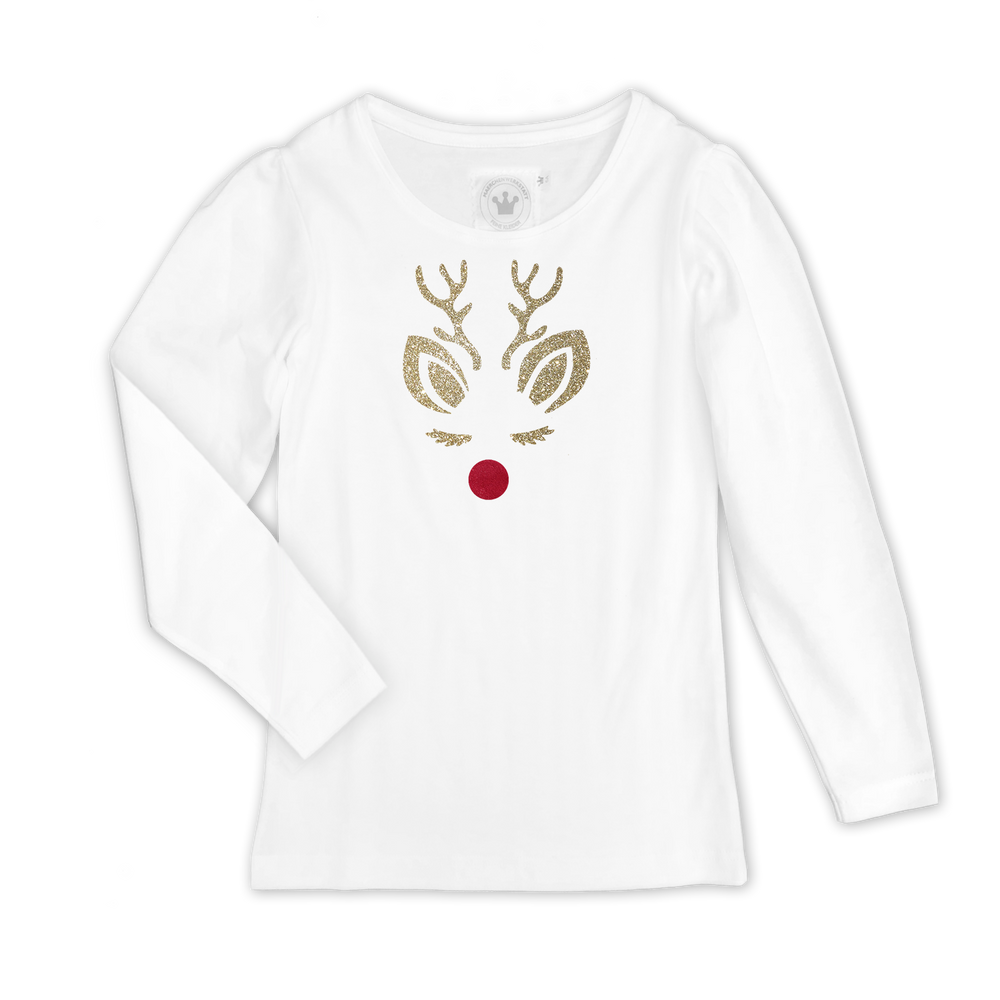 Weihnachts T-Shirt Kinder Rudolph mit Glitzernase