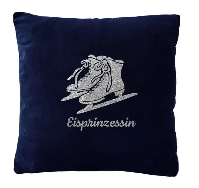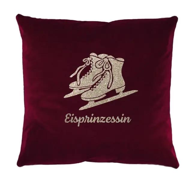 Unser edles Samtkissen mit giltzerndem Schlittschuhen und "Eisprinzessin" ist ein zauberhaftes Geschenk für kleine und große Eisprinzessinnen die gerne Schlittschuhe laufen.